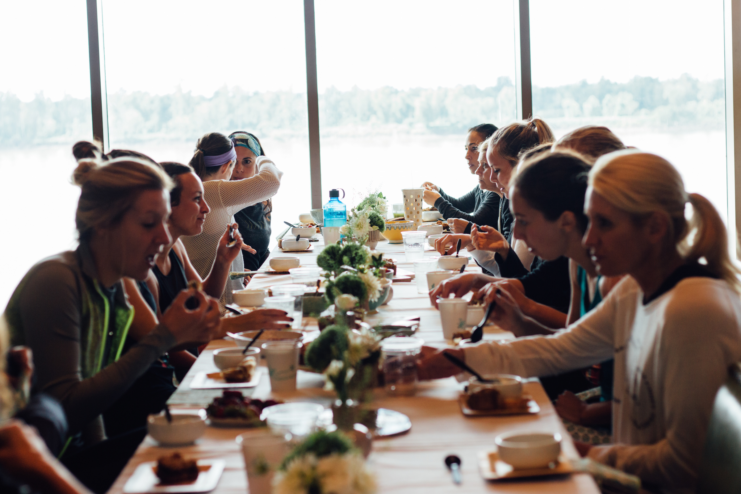 For the brunch, Williamson says she and Jacobs coordinate to have food that’s protein-based to help repair their muscles, but also adequately feed the hungry class.