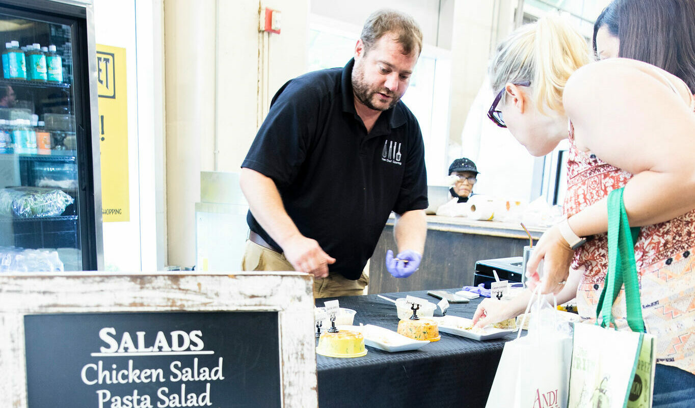Every few minutes, patrons stop by his booth at the Red Stick Farmers Market for a pint or two to bring home. The market is the one retail outlet in the Capital City where Thompson, a former restaurant chef who trained at The Culinary Institute of America in Hyde Park, New York, sells his homemade salads, dips and tortes.