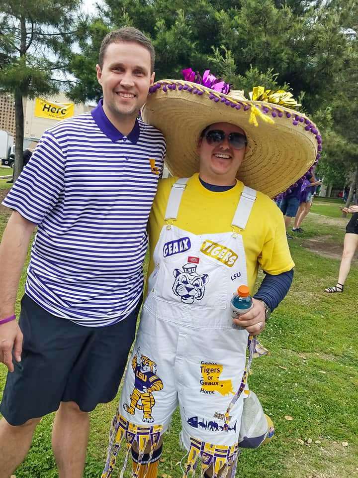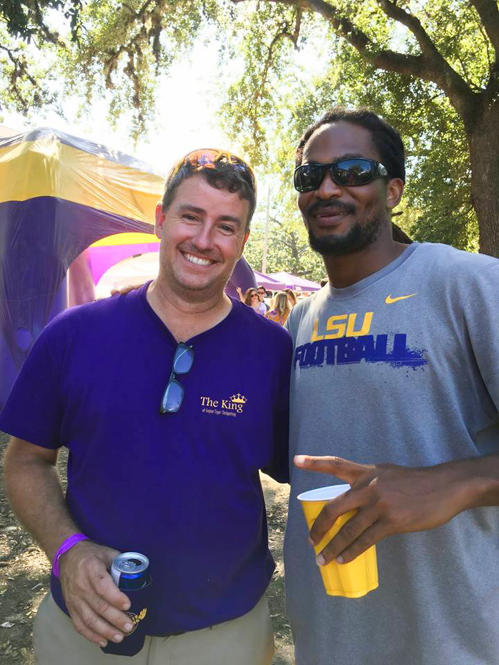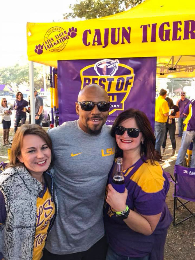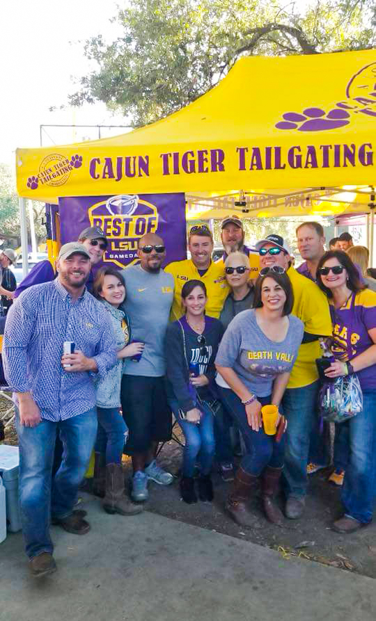 You never know who might stop by the Cajun Tiger Tailgating spot, which sits in the shadows of Tiger Stadium—close enough to the roar of the crowd. Former LSU wide receiver Demetrius Byrd, LSU head basketball coach