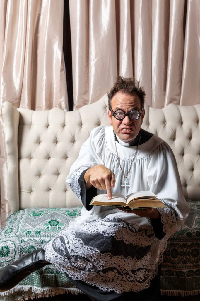 A Gentleman’s Guide isn’t the first show where Nolan has played multiple characters, but it is the first musical. It’s no small task, he says, to memorize lines, songs, stage direction and choreography for nine characters ranging from an earl to a clergyman to an elderly woman to an over-the-top actress. Doing it all individually isn’t the hard part—it’s putting it all together in one performance, he says.