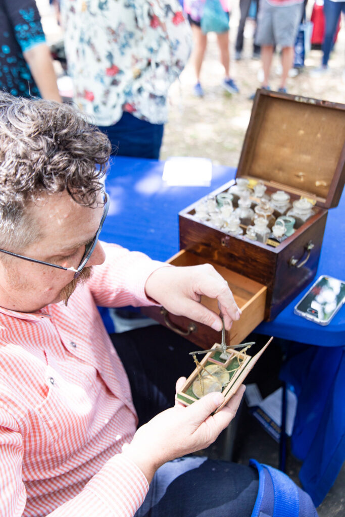 The kit was put in the collections category. I weave through the long lines of participants wrapping around the 19th-century plantation area to find my own category line. I’m greeted by a mustached man wearing a large grin. My appraiser, James Supp, knows exactly what he’s looking at, and within five minutes, so do I. (More on that later. Read all about the anatomy of this apothecary kit in 225’s upcoming June issue.)