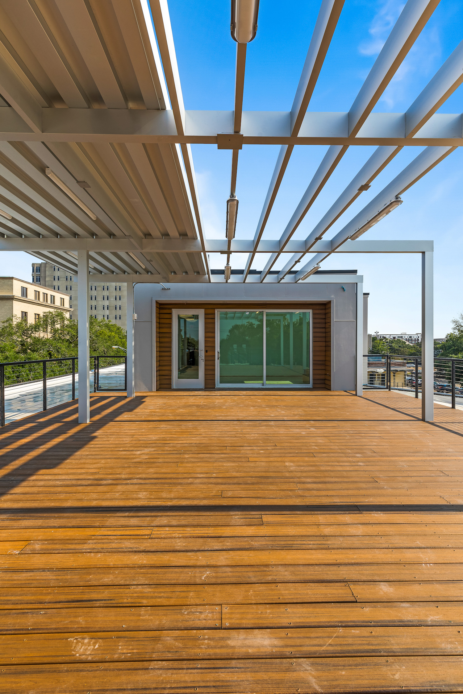There’s a kiln room for ceramicists, a black box theater for actors and a recording studio for musicians. There’s ample, flexible studio space where artists can work or collaborate with others. There are community rooms for art exhibitions and live performances. There’s a permanent gallery, a retreat area and a rooftop terrace with downtown views.
