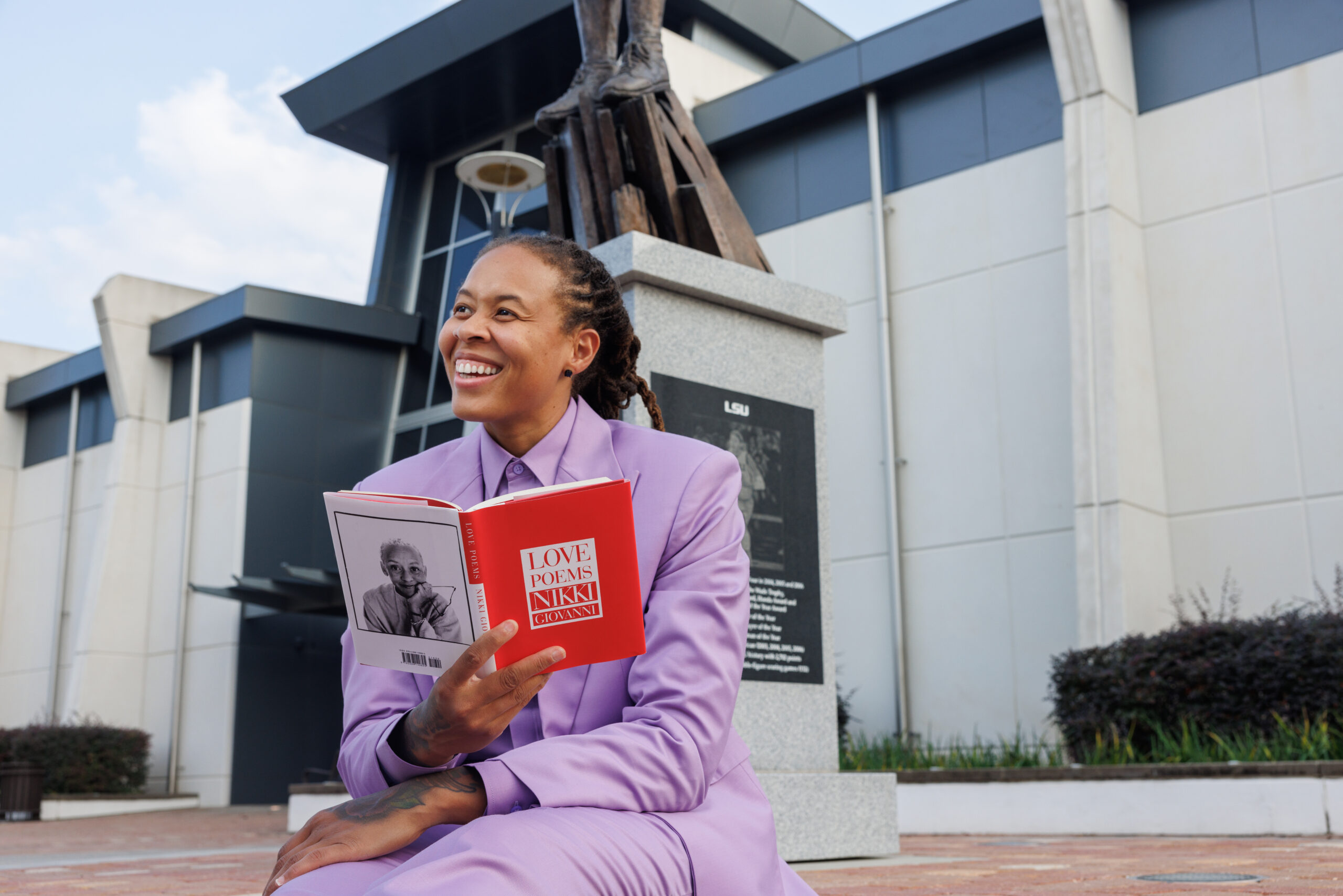 Locally, LSU Women’s Basketball Assistant Coach Seimone Augustus chose to recite an original poem she wrote for her acceptance speech at last fall’s Naismith Basketball Hall of Fame Enshrinement Ceremony. To prepare, she studied the work of poet Nikki Giovanni.
