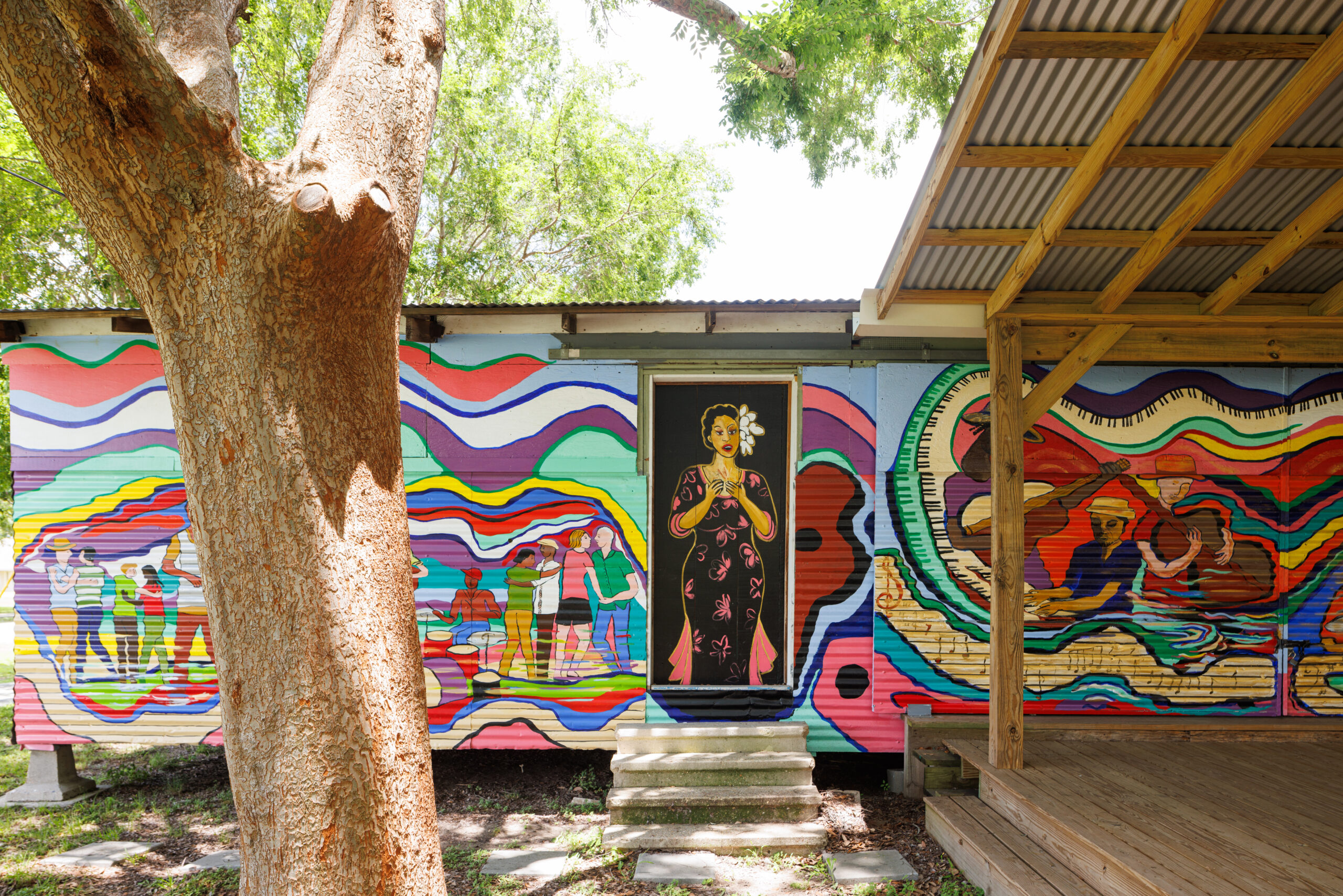 The exhibit is a community favorite. Live bands set up on the Juke Joint’s porch for the museum’s Historical Happy Hours on the third Friday of every month to play for assembled crowds. The Juke Joint’s colorful exterior wall mural, created by Louisiana artist Malaika Favorite, shows the Neals; native blues musicians Slim Harpo, Silas Hogan and Lazy Lester; and vocal legends Billie Holiday and Ella Fitzgerald; among others.