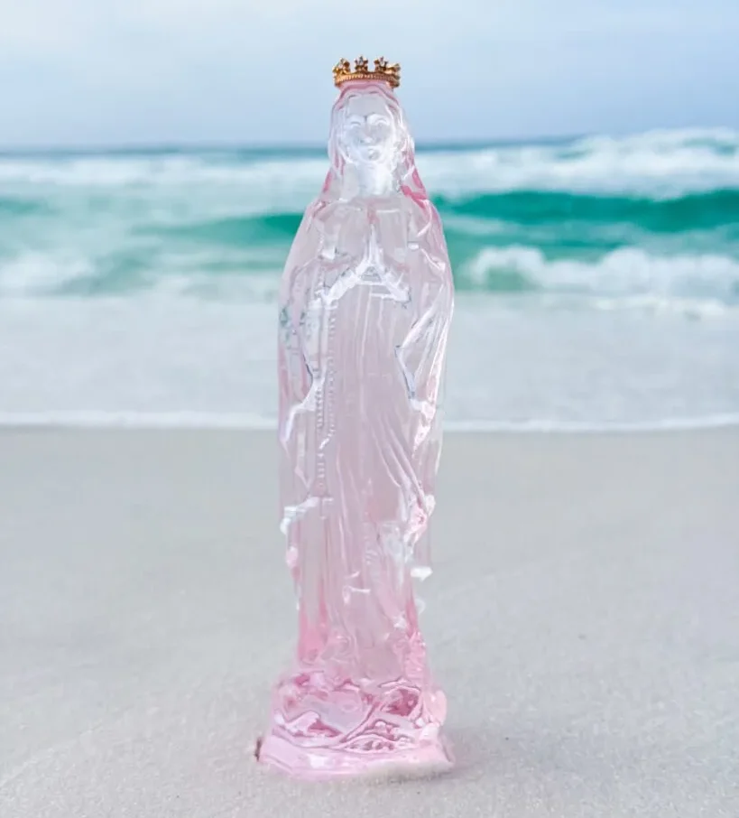The sculptures are available in a variety of colors, ranging from bright, bold and fluorescent shades to more muted hues, ensuring there is a Mary fit for every home. “She’s for everyone, not just the traditional people in church pews,” Abigail says.