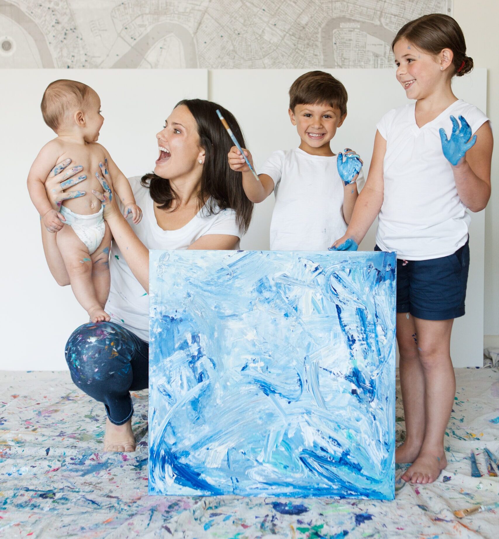 The artistic and business efforts are shared, aside from The Grey Collaborative, which Abigail spearheads. The Grey Collaborative offers children the opportunity to have a hand in the artworks that fill their family homes. The process starts with a collaborative session, in which a family goes into Abigail’s studio and paints base layers. Then, Abigail uses that foundation to create a commissioned piece with custom colors, dimensions, finishes, framing and more.