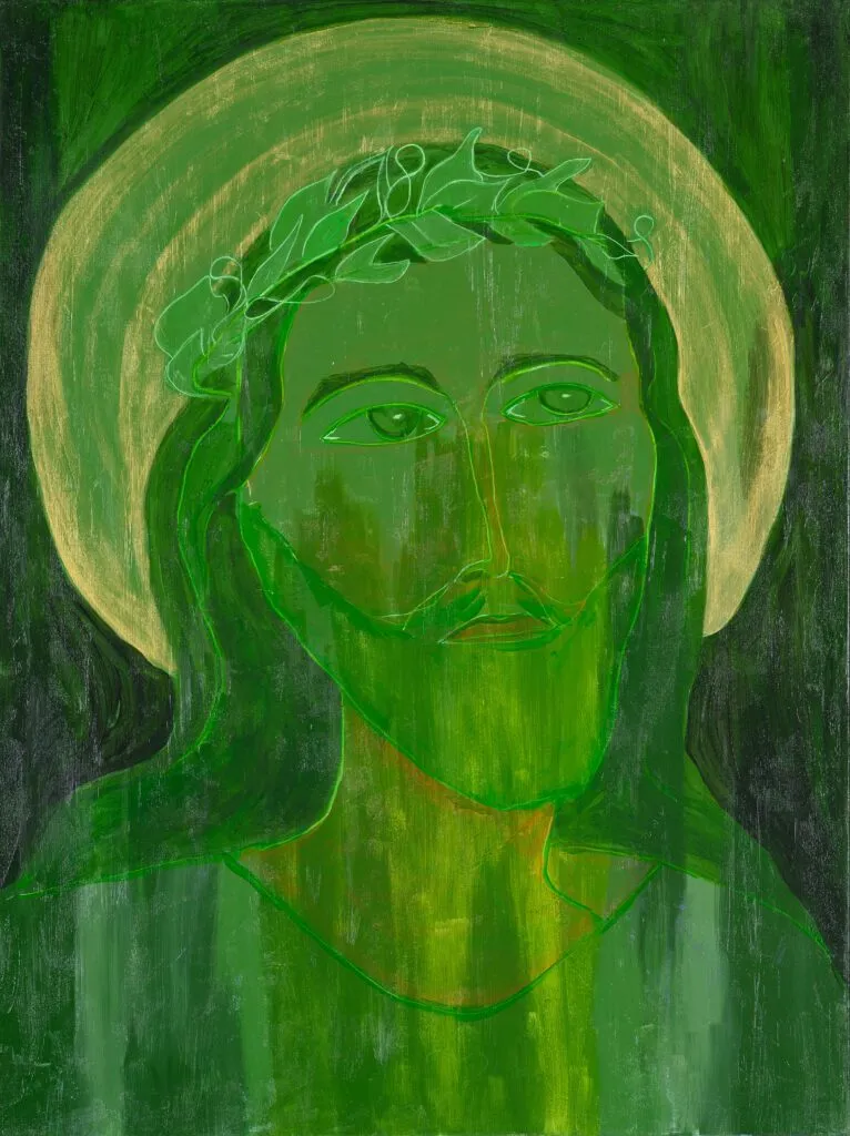 “The day after we lost him, I wanted to paint his face for our house, so I went out and bought a huge canvas,” Jency says, explaining that she hadn’t painted since middle school. “But when I went to paint his face, I ended up painting the face of Jesus, and after I was done, I just felt compelled to paint more.”