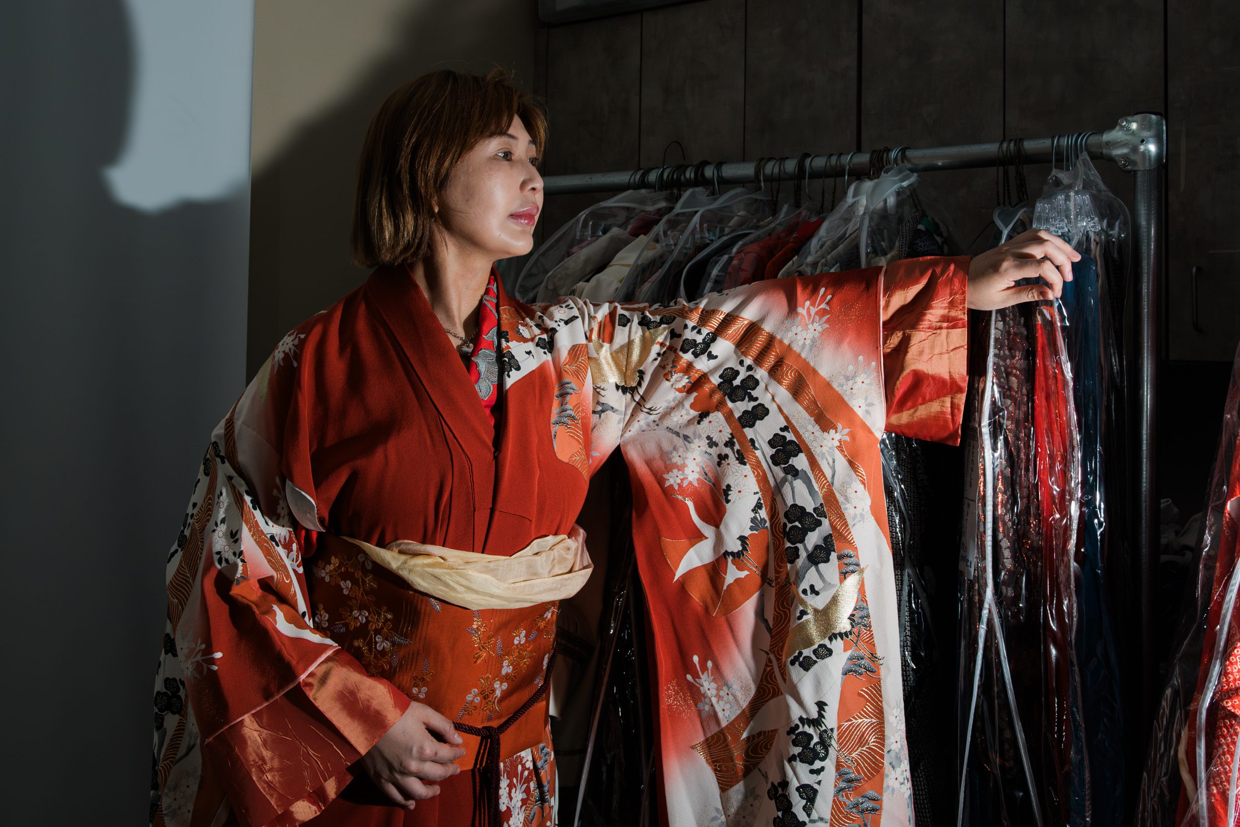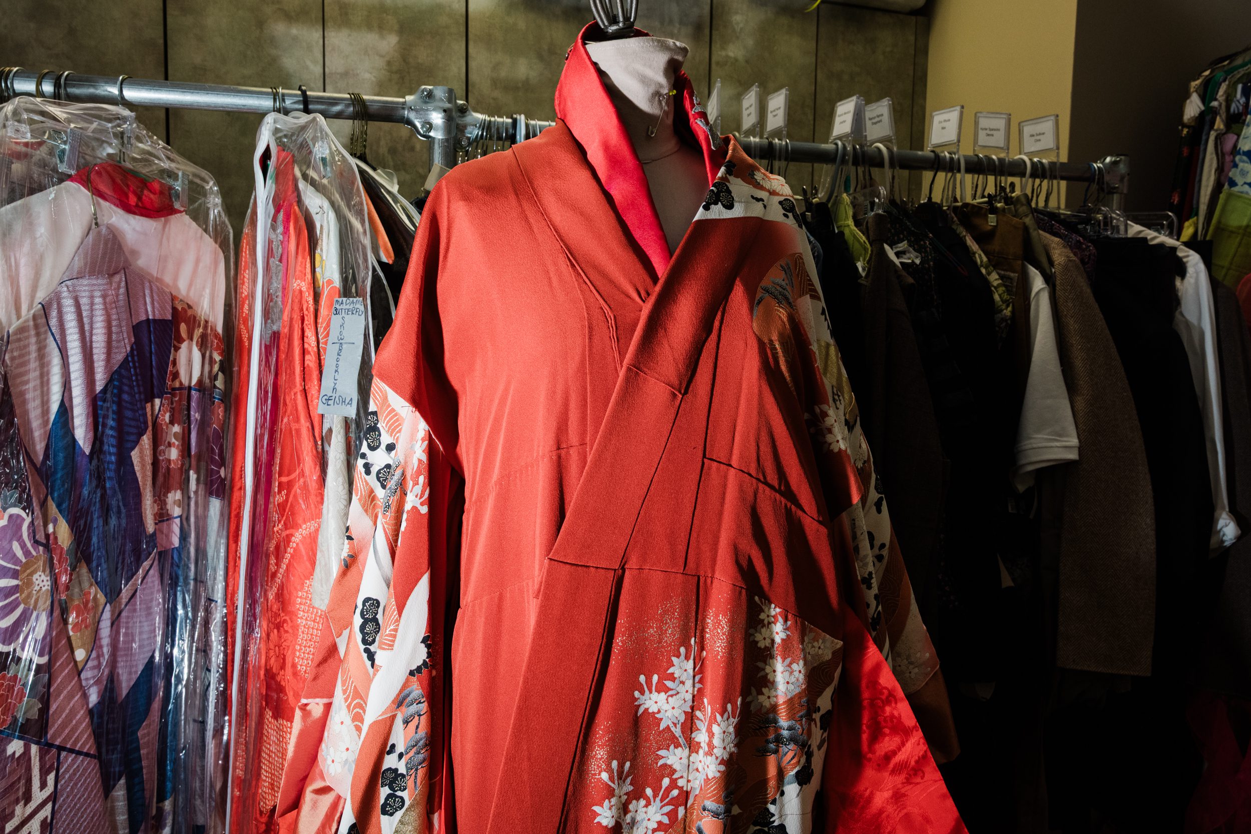 Kimonos in intricate patterns hang ready at the LSU School of Music Costume Shop as Opéra Louisiane prepares for its April 11 production of Puccini’s Madama Butterfly at the River Center Theatre for the Performing Arts.