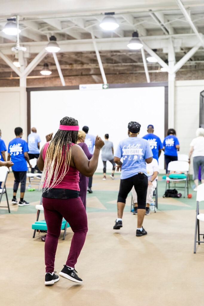 From chair aerobics to full dance routines, these older adults do not stop moving during the one-hour class. After it’s all over, most stay after to chat while others participate in an additional hour of line dances or take the time to walk laps on the indoor track.