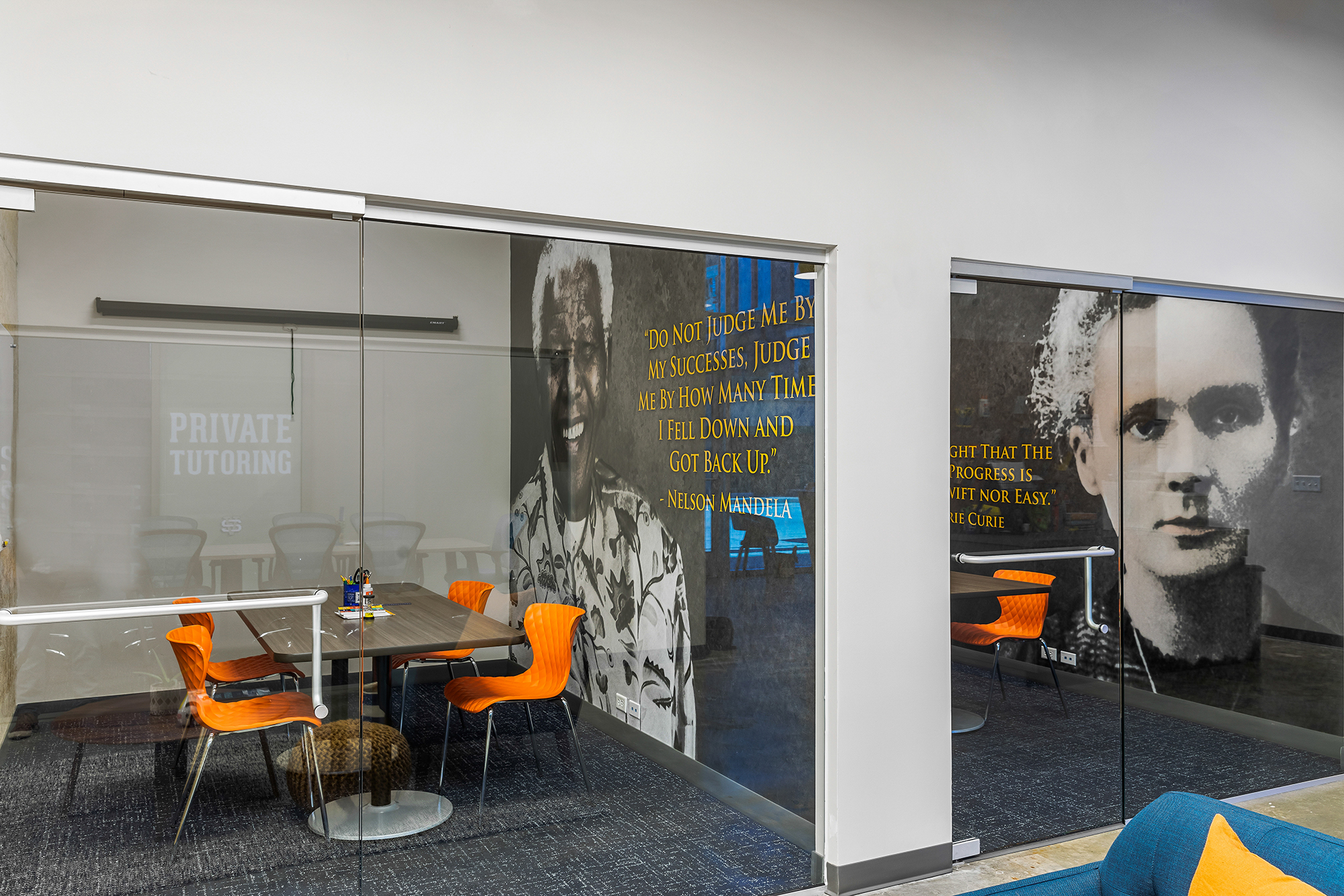 She opened Studyville in Perkins Rowe August 2020. The teen-centric academic center gives young people a place to do their homework, access tutors and engage in college prep, including ACT tutoring and meetings with college counselors. Vincent worked with Ritter Maher Architects to create a study lounge that felt both fun and productive, and also nodded to spaces on a college campus.