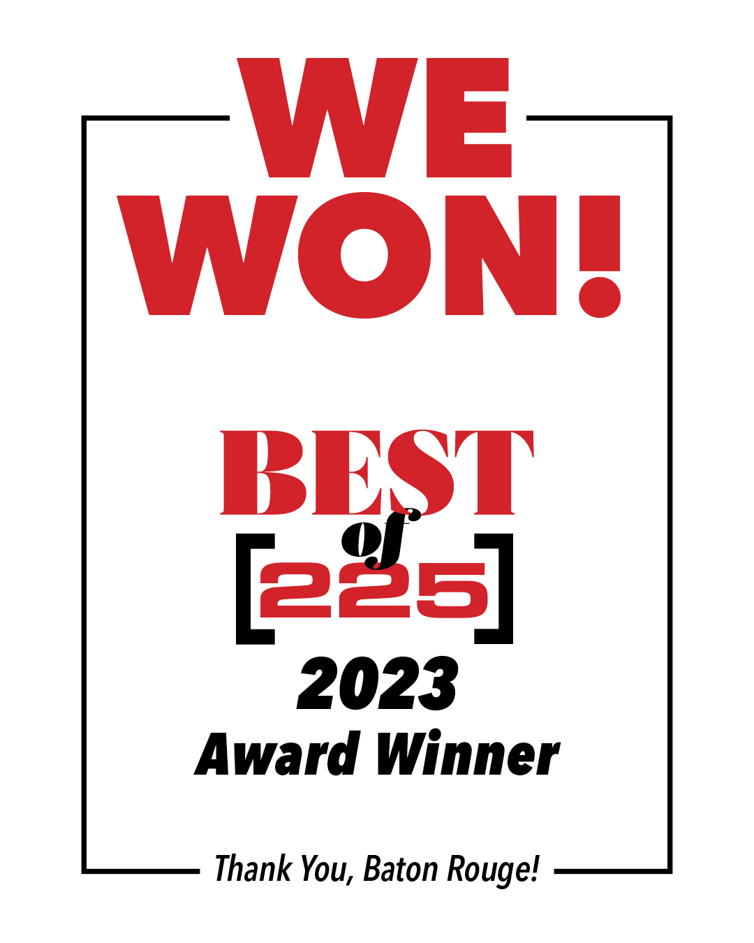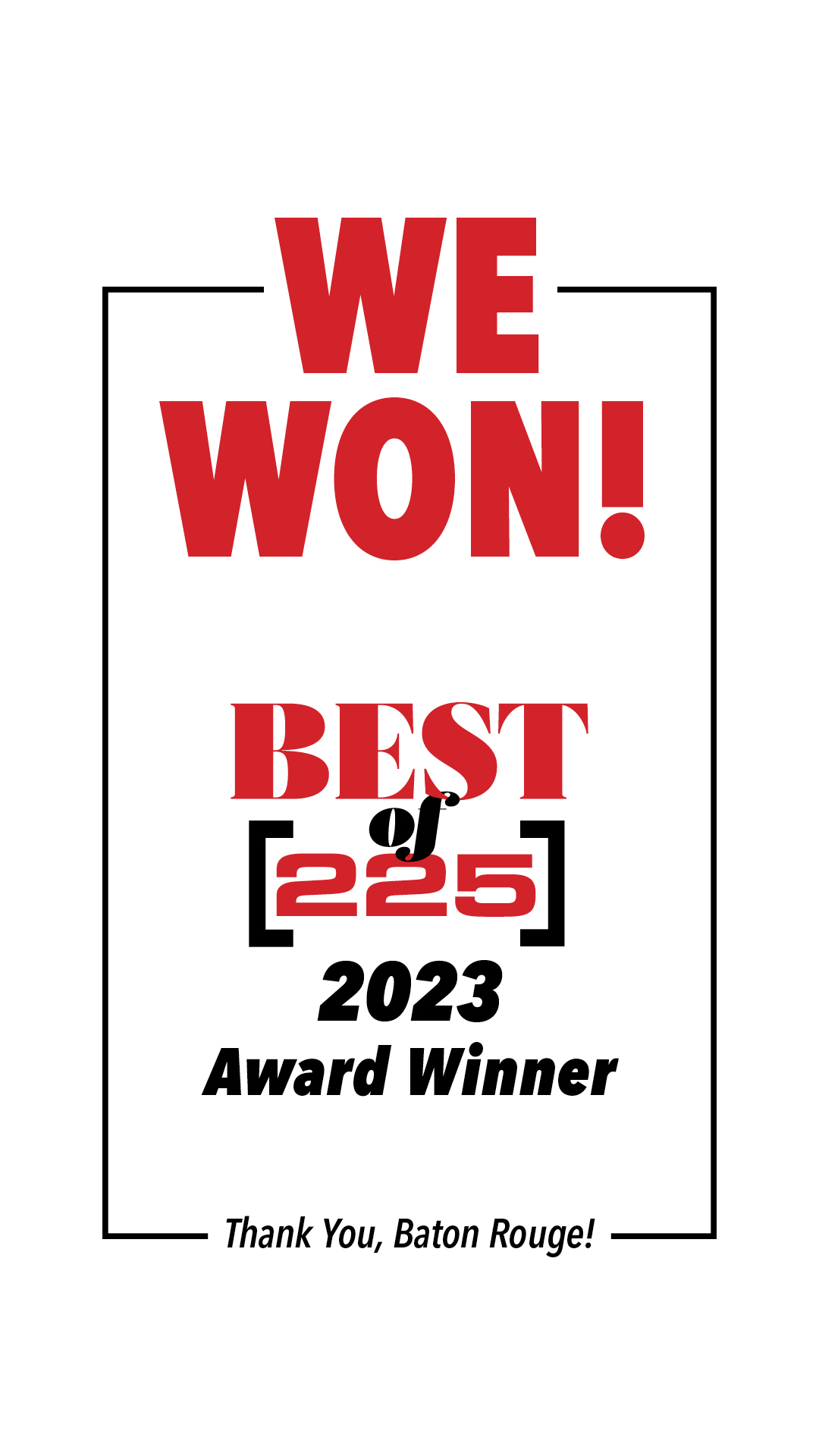 We are officially Baton Rouge’s “Best!” @225batonrouge just announced its reader-selected 18th Annual #Bestof225 winners, and we took home the award for Award Name Here! Browse all the winners here.