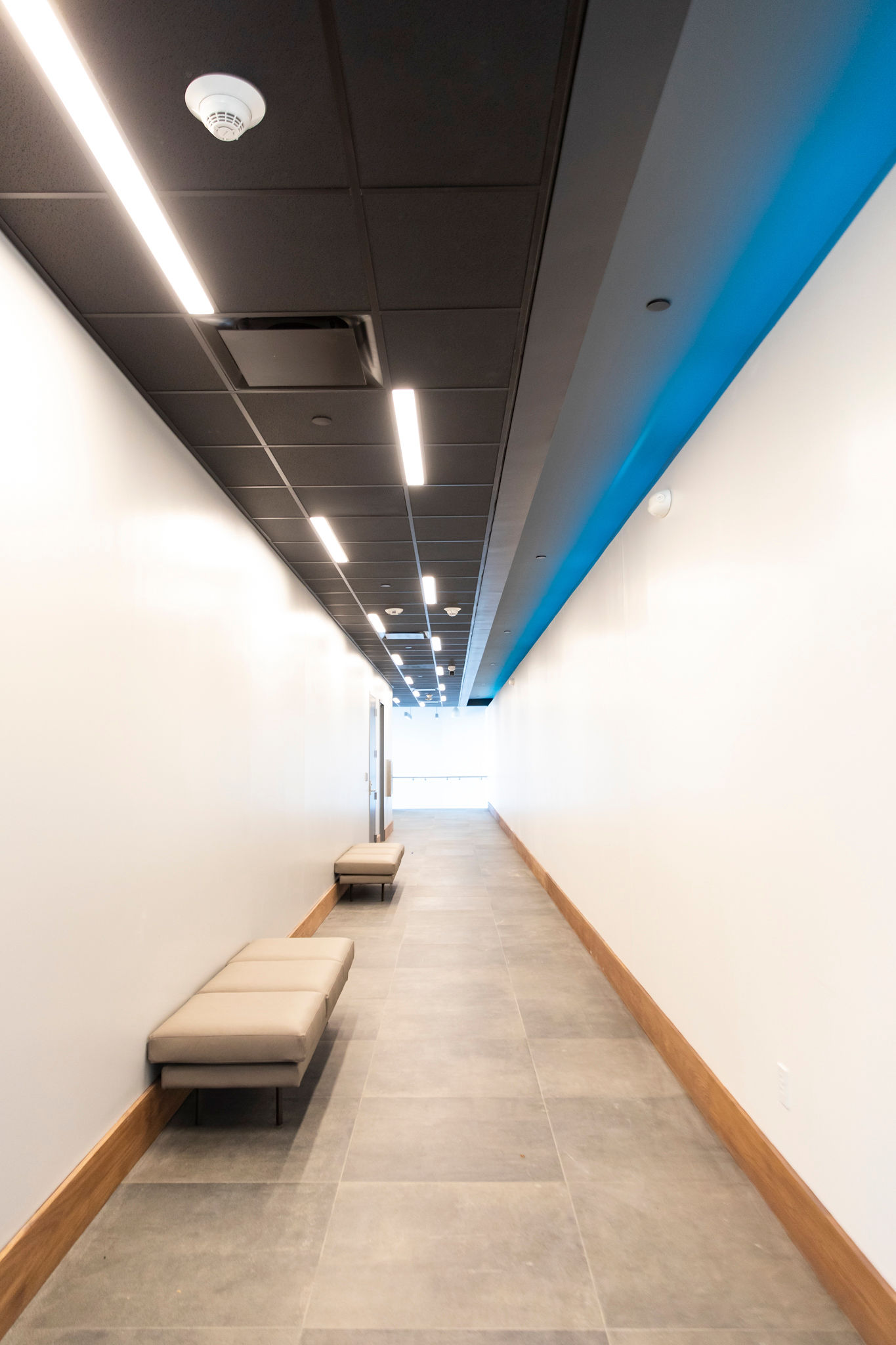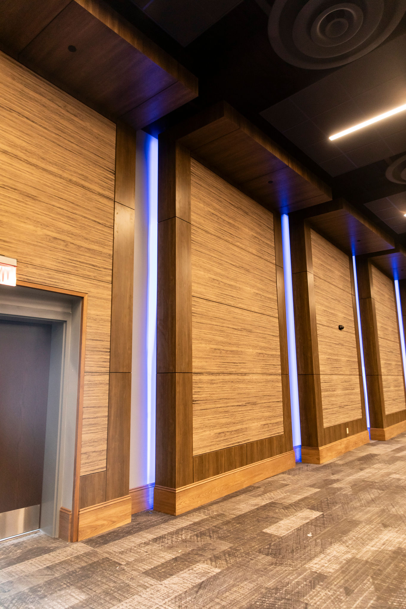 Domain Architecture designed the building. Its main feature is an 8,400-square-foot auditorium/ballroom that can accommodate around 900 with theater-style seating. The ballroom’s walls were built with acoustical fins to reduce feedback and are illuminated by soft, changing LED lights, says theater manager Jacob Sullivan.