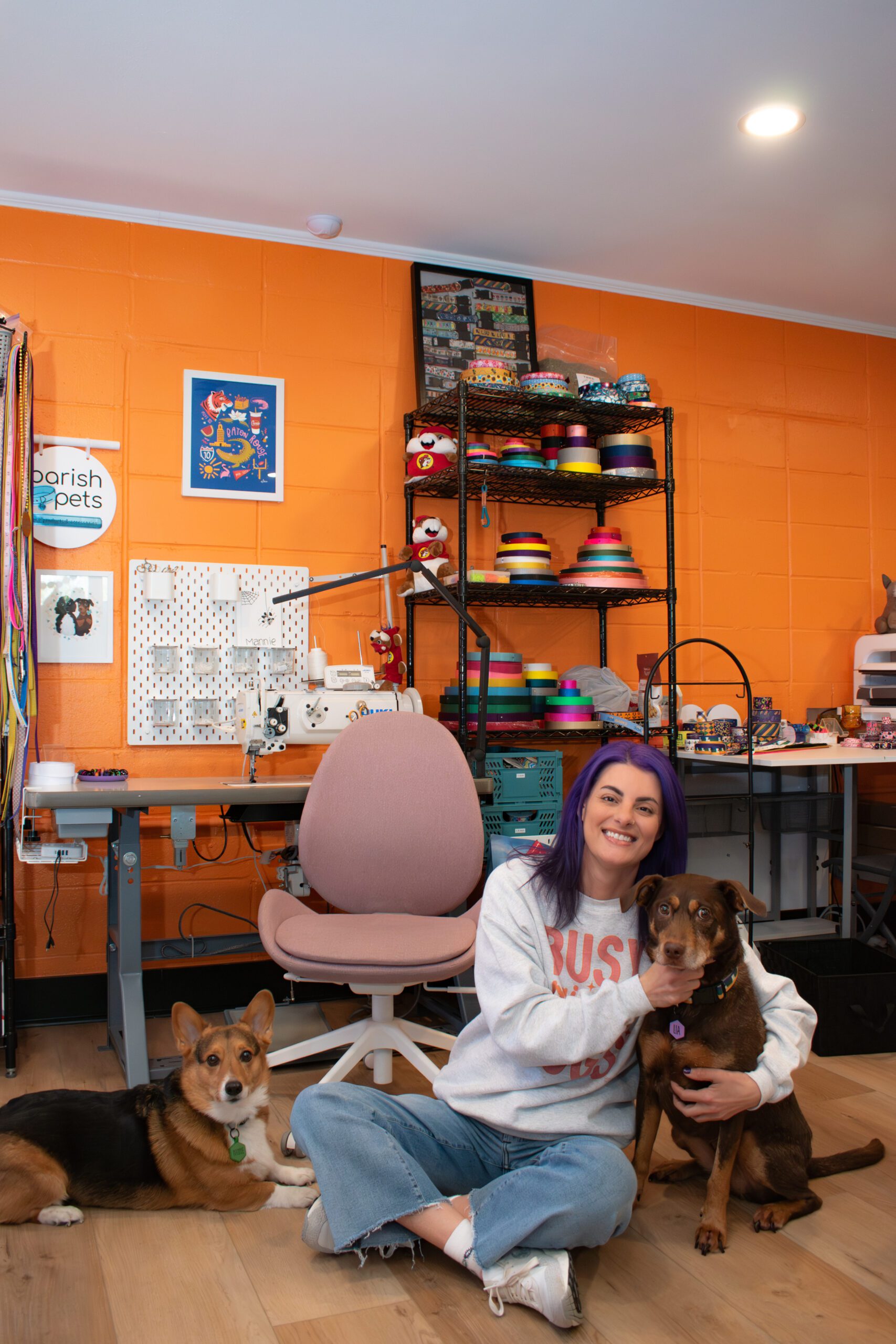 She watched YouTube for guidance and was soon making dog collars for her friends’ pets. The hobby quickly morphed into a side hustle, with Kipps selling festive collars and leashes at outdoor markets and through her own Etsy store. That led to launching a retail storefront on S. Foster Drive in 2021. Parish Pets’ original 900-square-foot store had room for her growing inventory, which also included homemade dog treats and specialty pet toys.