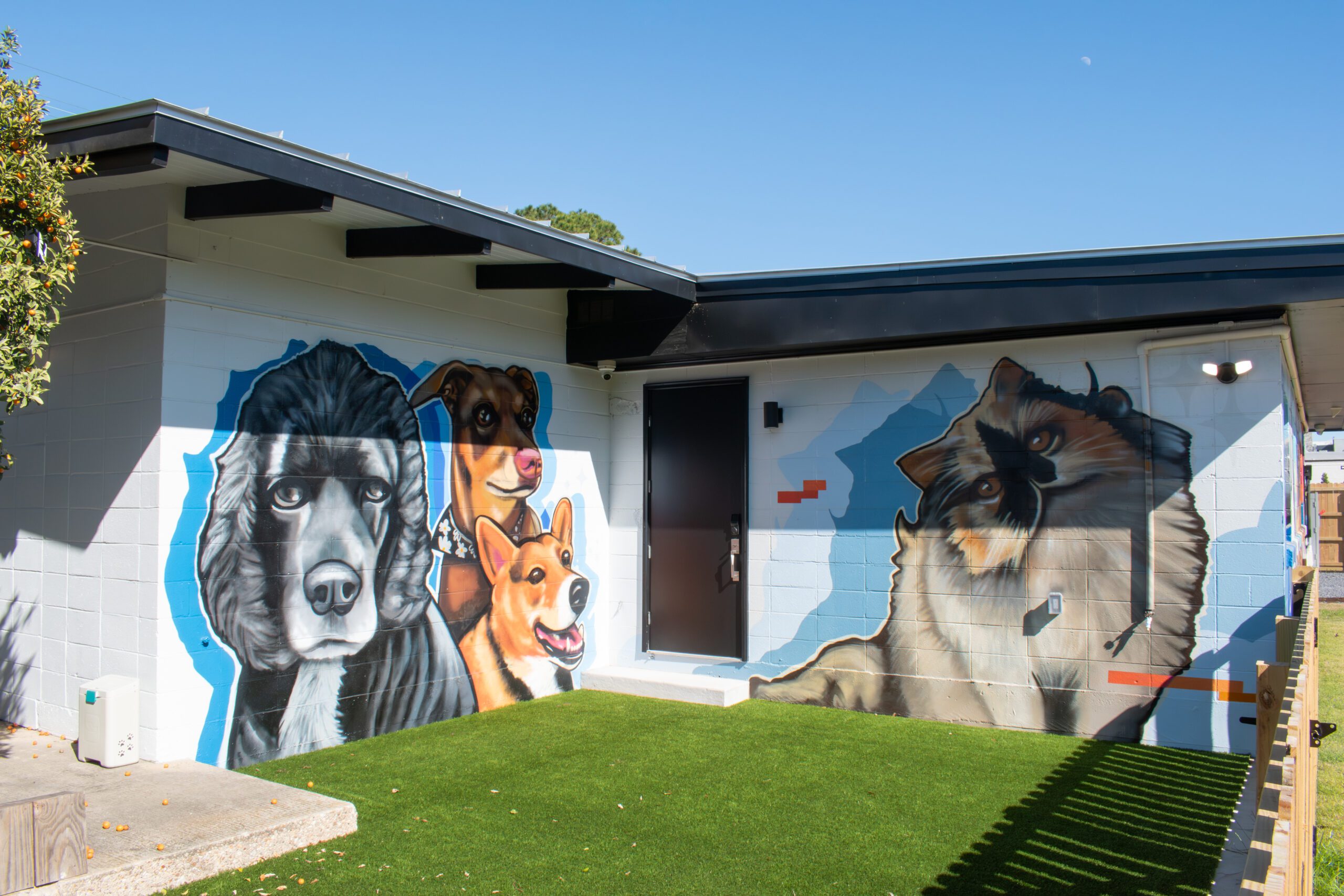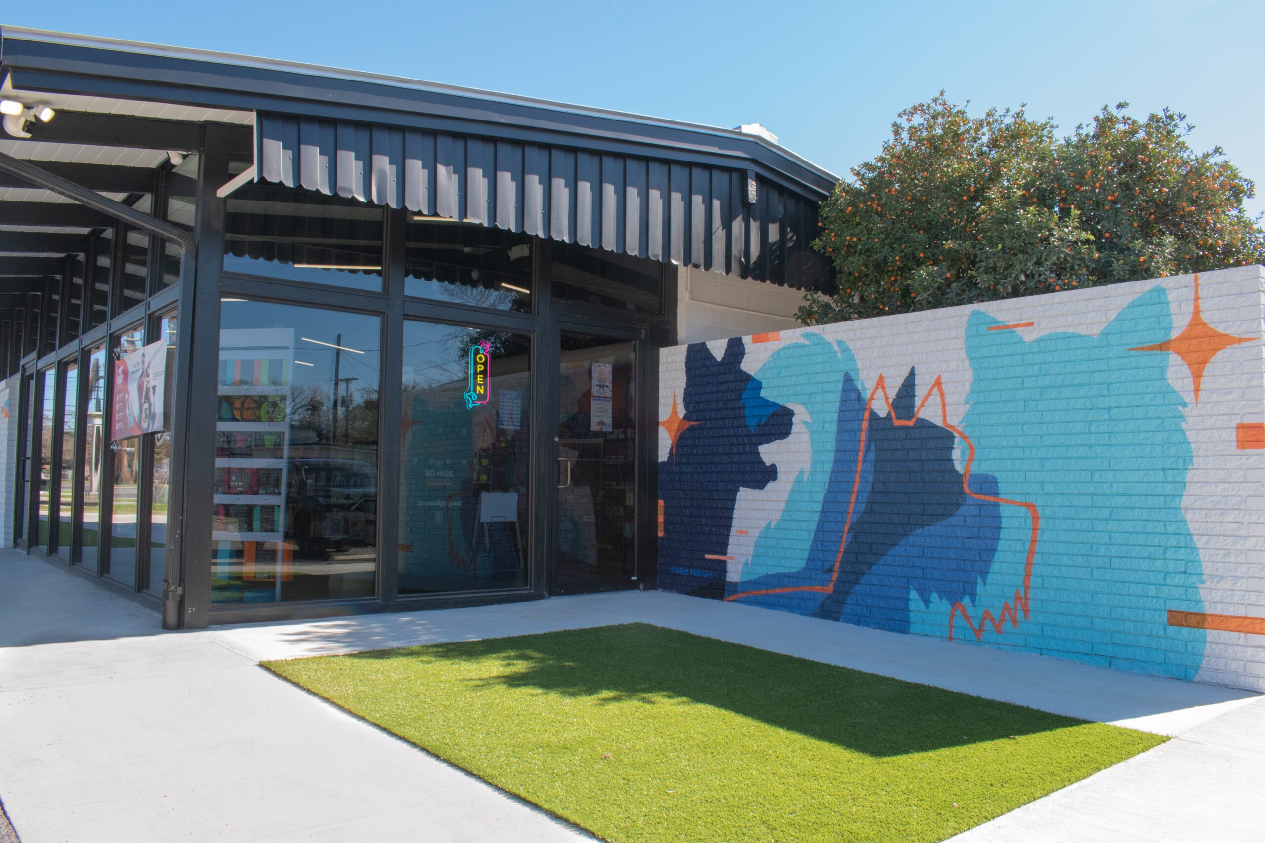 Parish Pets’ new space will be able to host pet adoptions, thanks to an ample, fenced-in backyard, Kipps says. She’s also considering puppy yoga, pet vaccinations and other special events. Festive outdoor murals painted on the side of the building by MarcFreshArt feature the faces of furry friends submitted and voted on by Parish Pets’ Instagram followers.