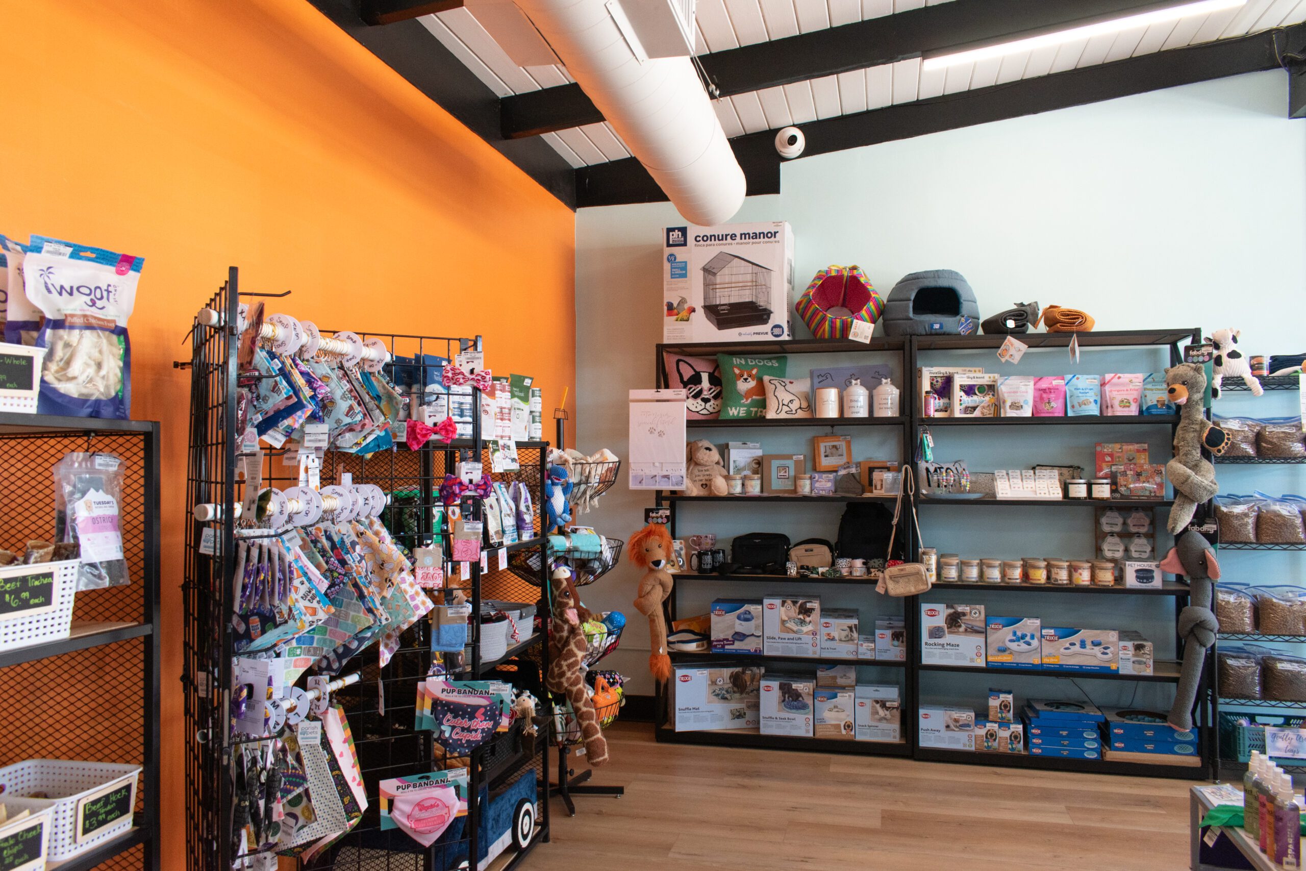 “We like to carry things you can’t find in the big box stores,” she says, pointing out lines like Open Farm and SquarePet, a vet-formulated line of dog food that doesn’t require a prescription. “Not only are they great foods, but they’re products that are planet-conscious, and that’s become really important to a lot of people.”