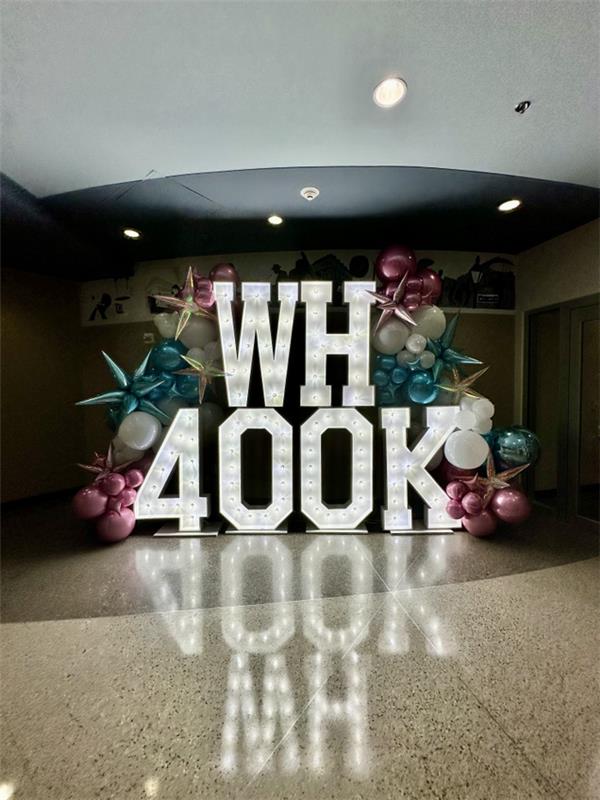 In the days leading up to Baby Blair’s birthday, the hospital was abuzz with excitement. Staff voted on whether the 400,000th baby would be a boy or a girl and took guesses on how much he or she would weigh and measure. Outside the cafeteria, marquee letters and numbers spelling out “WH 400K” were illuminated and framed by pink and blue balloons for photo ops.