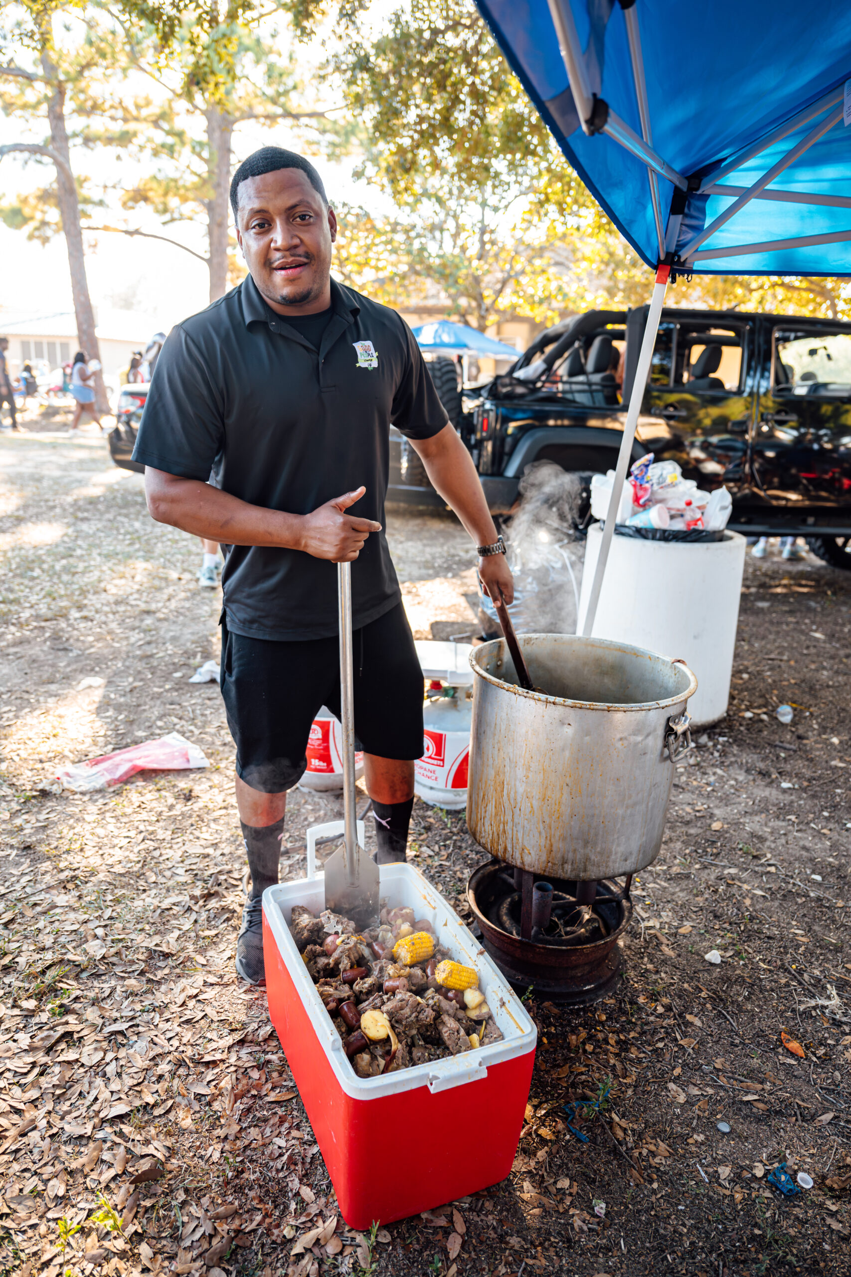 Lifelong Southern University fan and tailgater Donalvon Lewis grew up supporting the Jags. Two years ago, he began bringing his Good People Catering truck to select home games to serve hungry fans. Stationed near Isaac Greggs Band Hall, Lewis prepares made-on-site boiled seafood; boiled turkey necks with corn, sausage and potatoes; hot honey jerk wings; jambalaya; and homemade boudin.