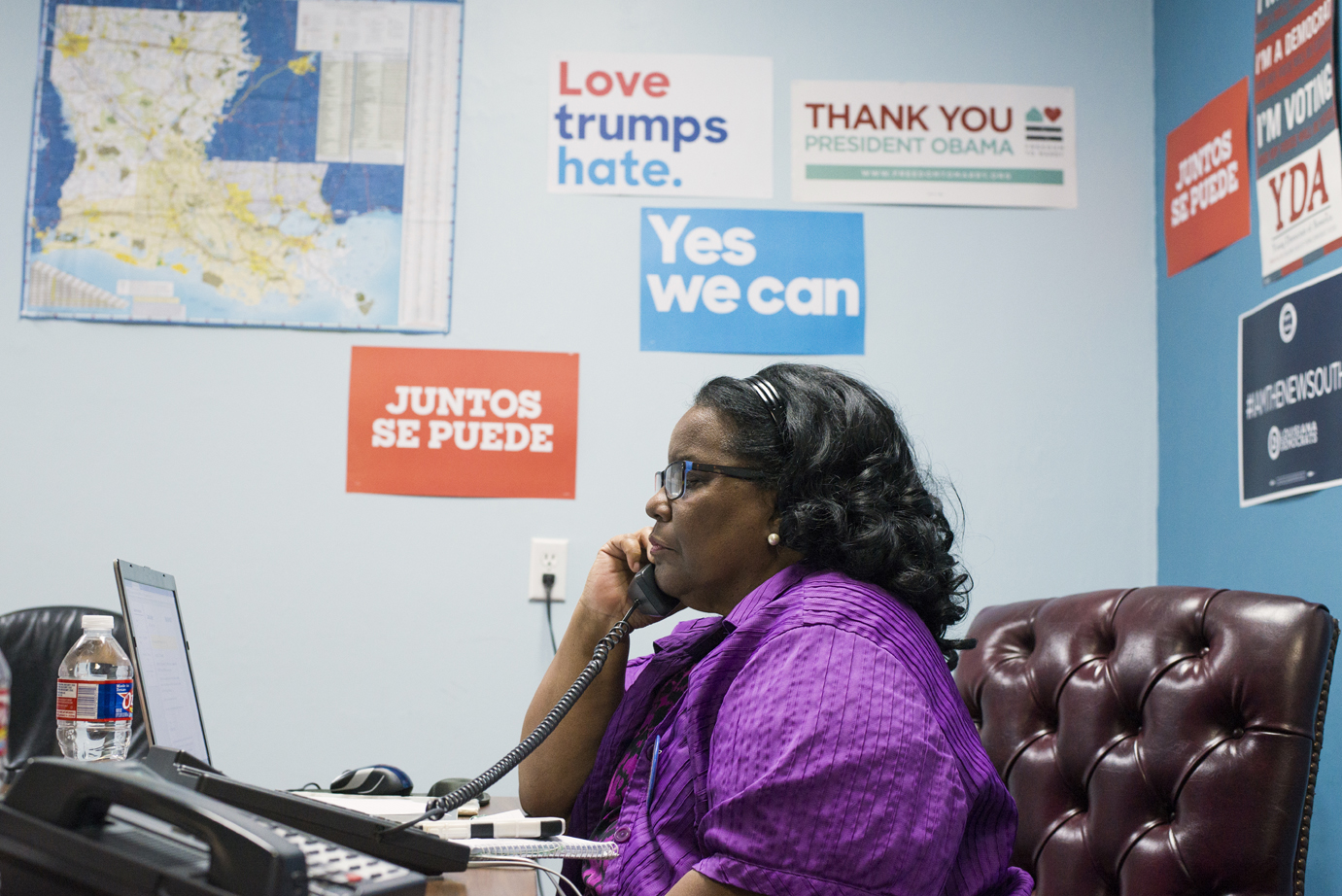 “On any given day, it is incredibly diverse,” Louisiana Dems executive director Stephen Handwerk says of the men and women who volunteer. “We have senior citizens that come during the day to make phone calls. We have college kids that on the weekend give up their time to go and knock on doors and make phone calls. It’s African-American, it’s Caucasian, it’s Latino, it’s gay, it’s straight. That’s probably what’s most exciting about this. … This election has really brought people together.”
