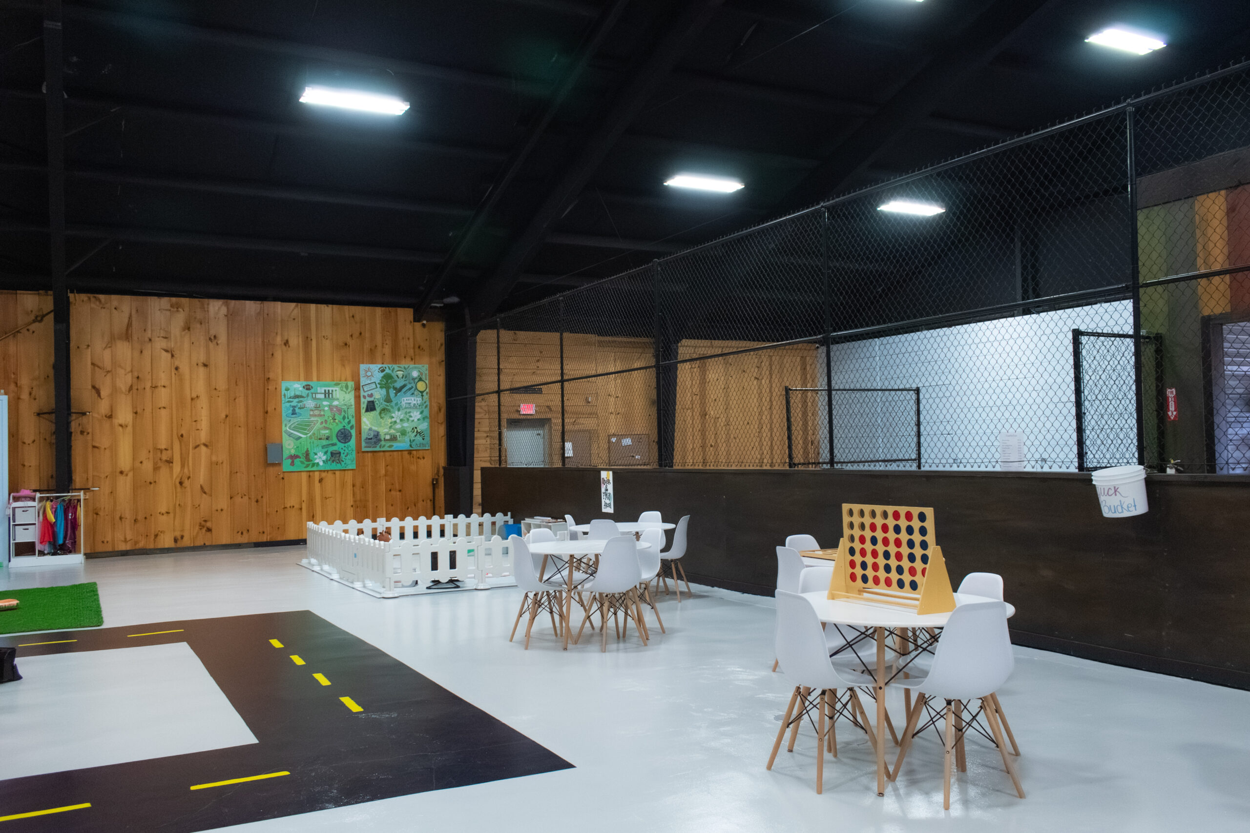 Beyond the village itself, The Play District has different spaces for kids of all ages, and for their parents. The facility includes a snack area, a designated toddler zone, an active play area where older kids can burn off energy, and plenty of seating for parents.