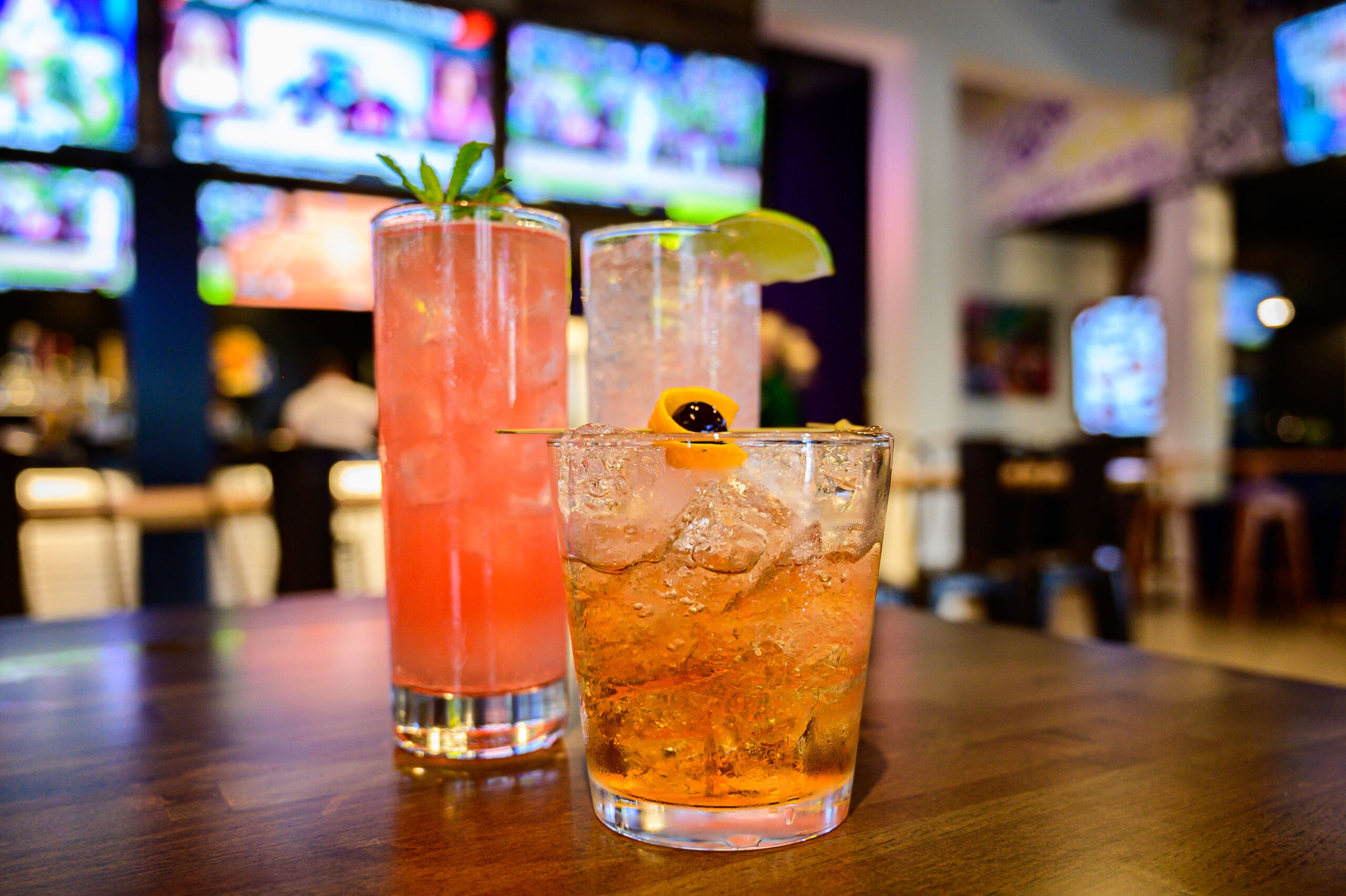 The bar is decorated with different sports and pop culture references, and each bay has its own vibe. Besides the glare from about 50 TVs, neon signs are scattered throughout. Purple and gold accents like chairs, barstools and Joe Burrow-themed artwork nod to LSU. Whitman says each location has slightly different decor to reflect local culture.