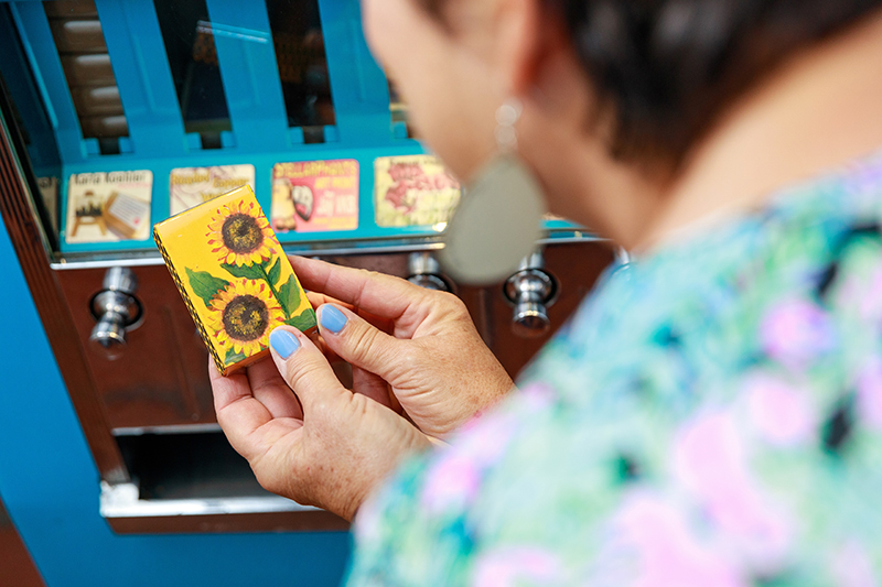 One of Baton Rouge Gallery’s (BRG) most popular permanent exhibits is its Art-o-Mat, a decommissioned cigarette vending machine beautifully repurposed into a repository for tiny artworks.