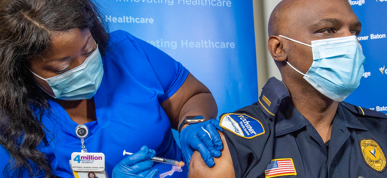 Over at Ochsner, cameras would roll again. But this time, it was press cameras clicking and Williams’ medical colleagues cheering. It felt like the whole city was watching as Williams administered many of the first doses of Pfizer’s vaccine to employees at the medical center.