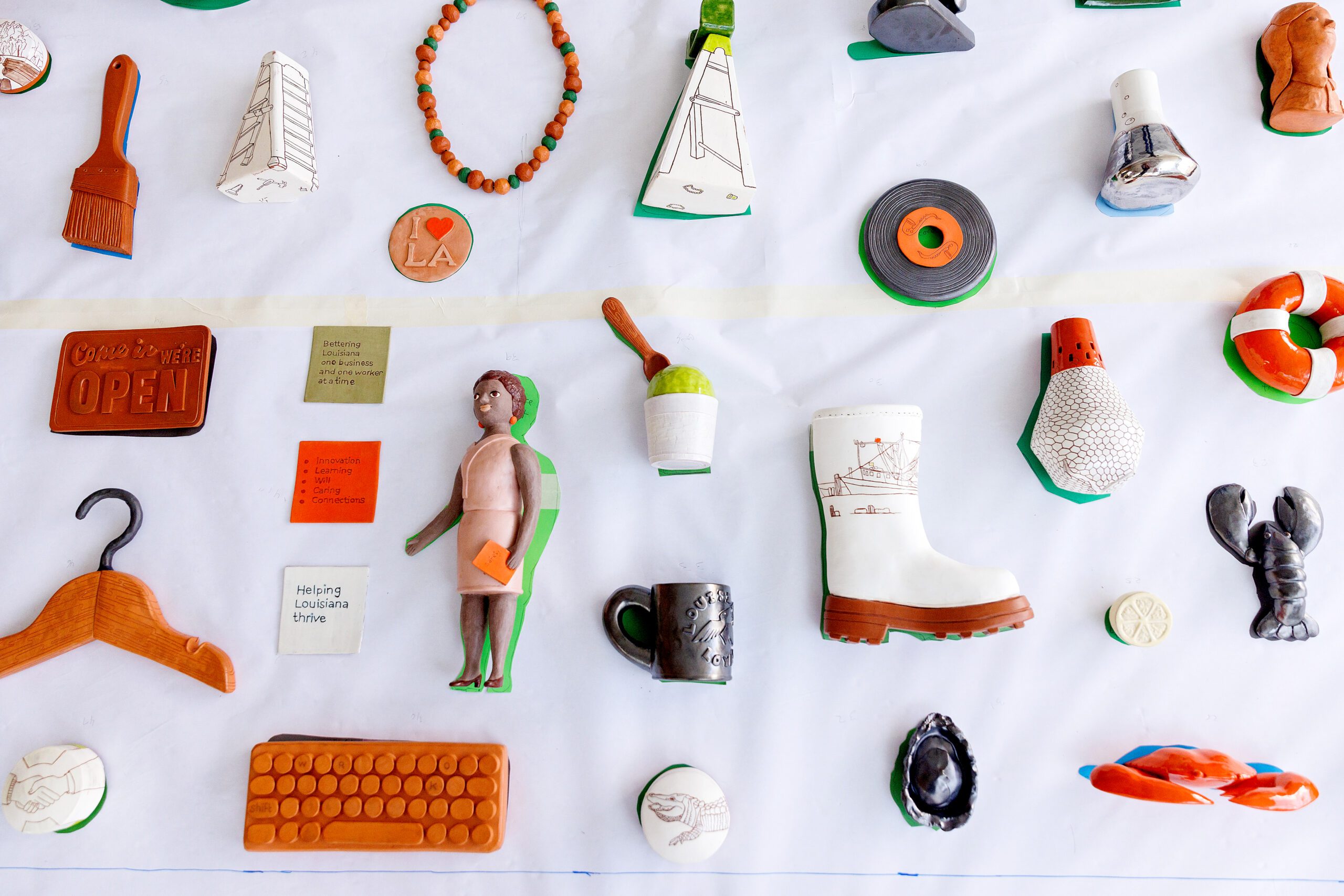 Hard work is what makes the world—and economy—go round. In Louisiana, the many unique occupations available to residents help distinguish our state. To show appreciation for all workers, the Louisiana Workers’ Compensation Corporation partnered with Baton Rouge Gallery and local artist Mikey Walsh to create symbolic ceramics for a new art installation.