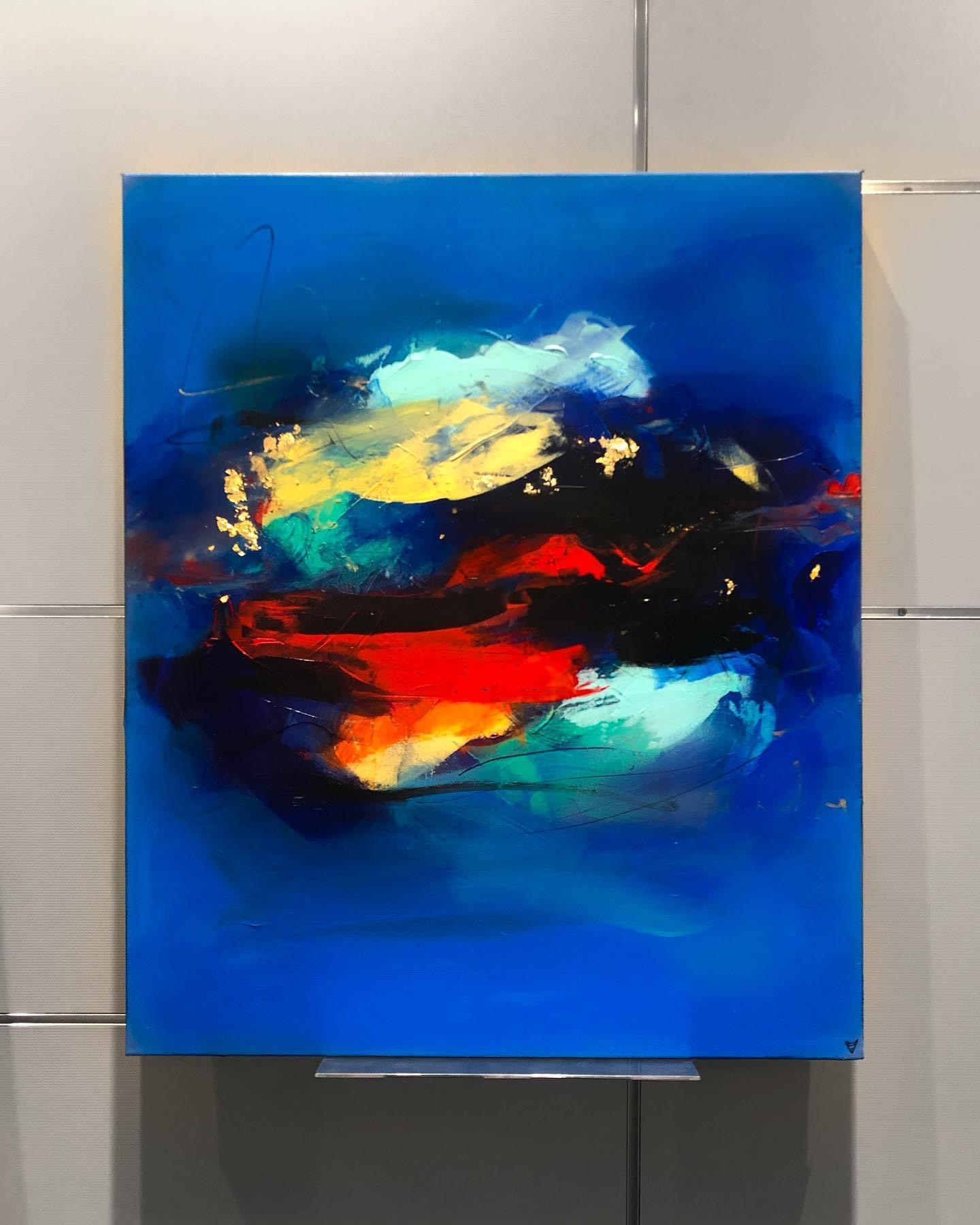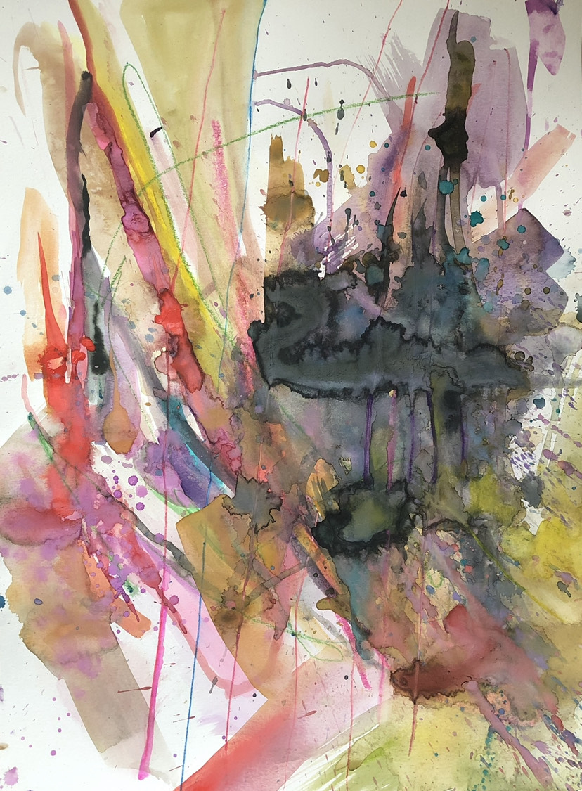 Alexis Phillips has a musical background, so she relies on music to help her paint her abstract pieces.