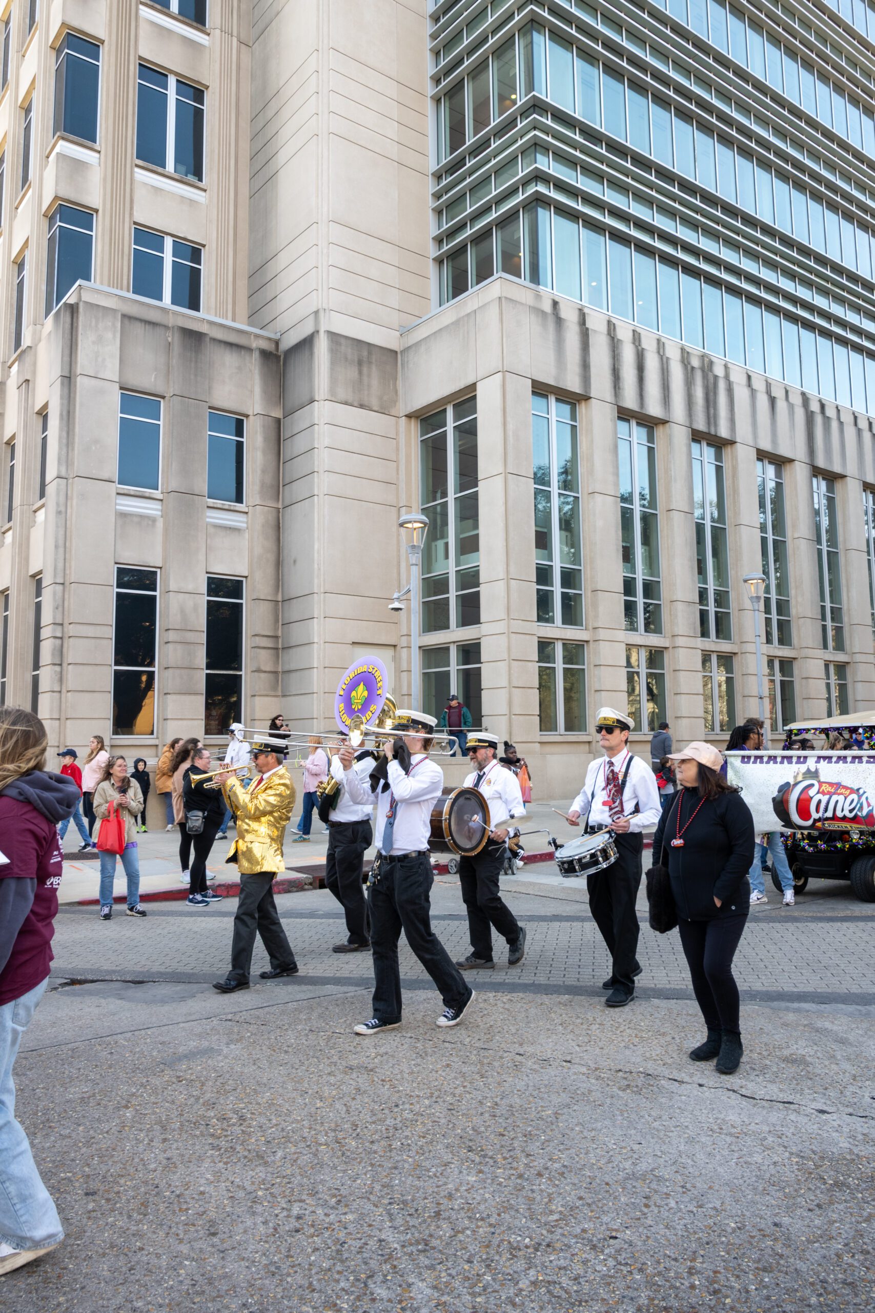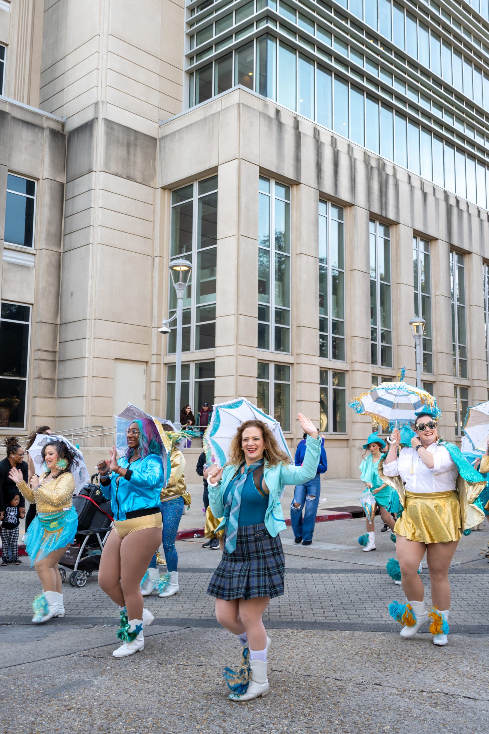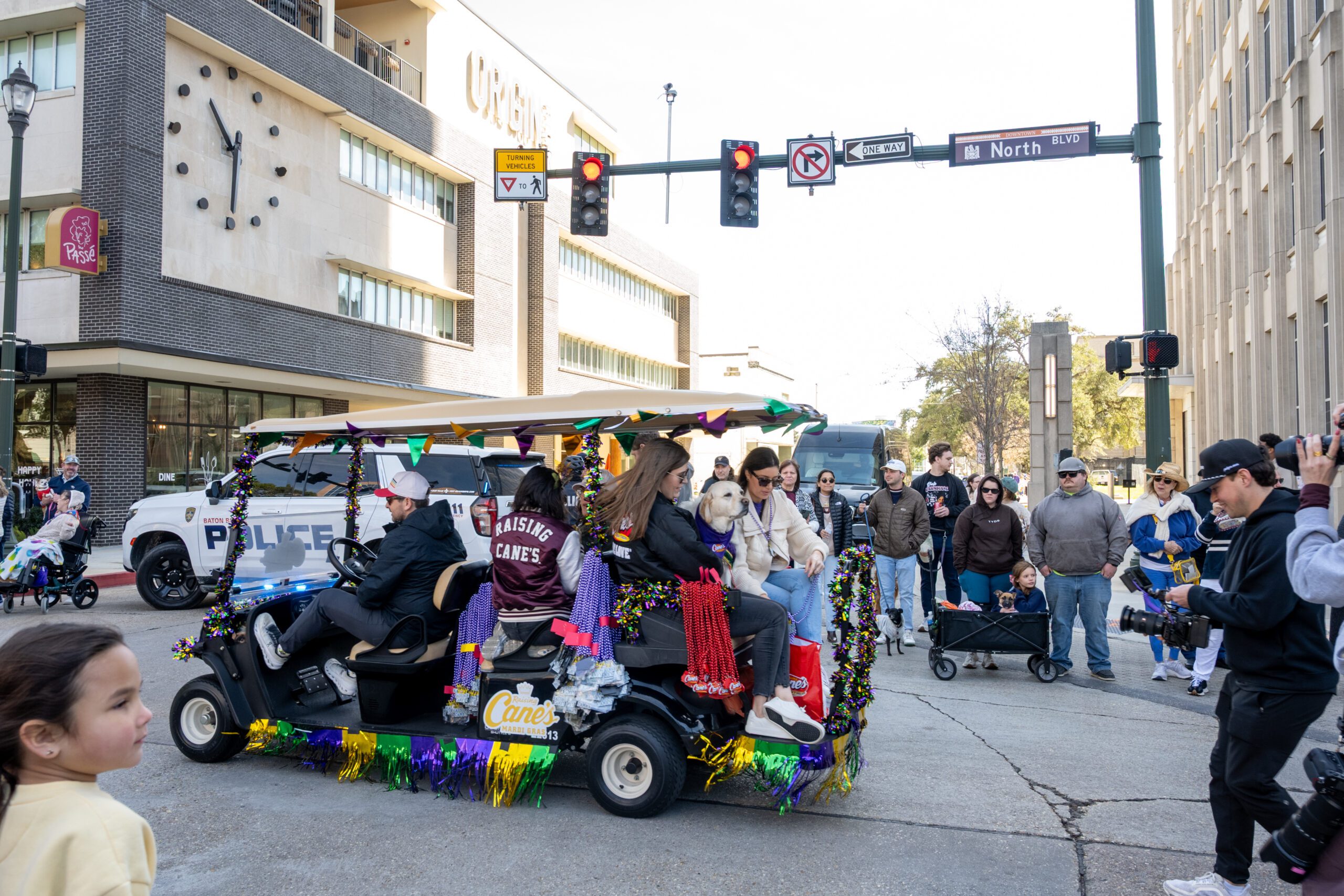 Whether wheeled in a decked-out wagon or guided by a leash, this pet-friendly parade featured plenty of dressed-up furry participants, like Raising Cane III. Humans got in on the fun, too, as the parade featured dance troupes like The Baton Rouge BeignYAYs and The Flamingeauxs. Attendees also brought along their pups to catch beads and treats as the krewe went by.