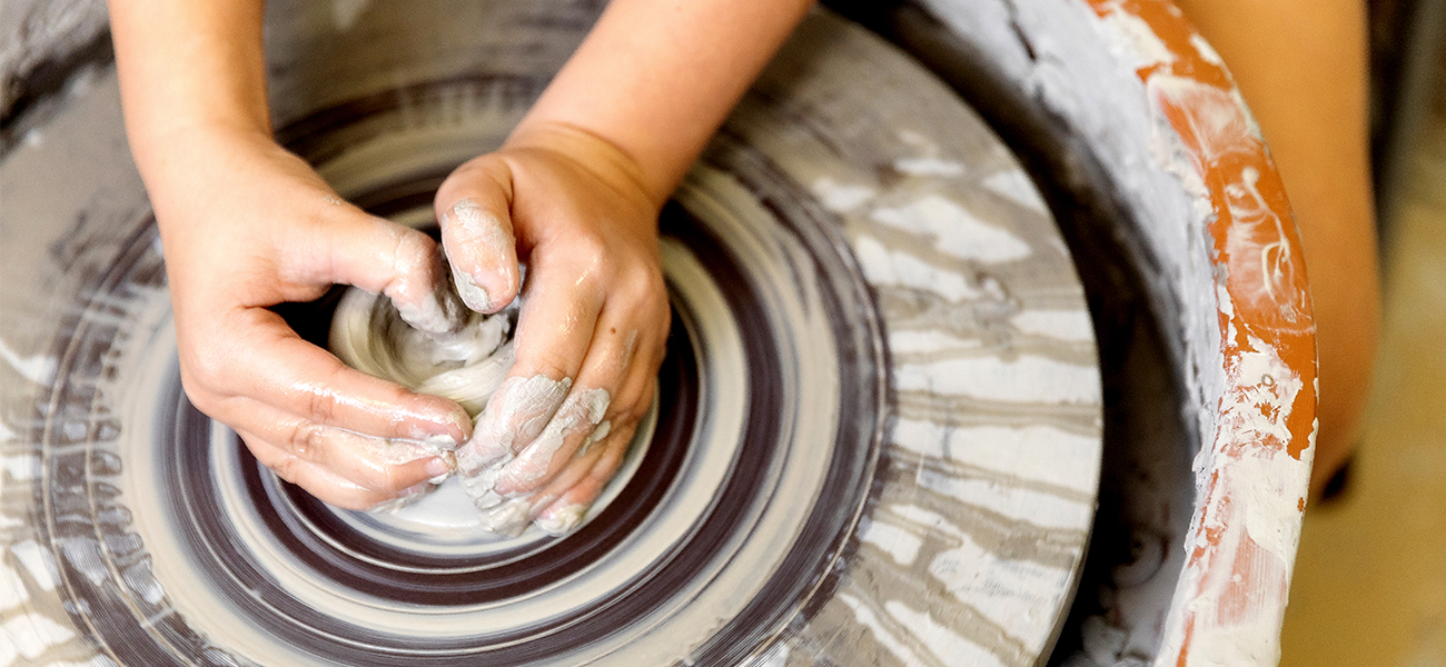 During pottery classes, students massage clay into from-scratch mugs, plates and vases.