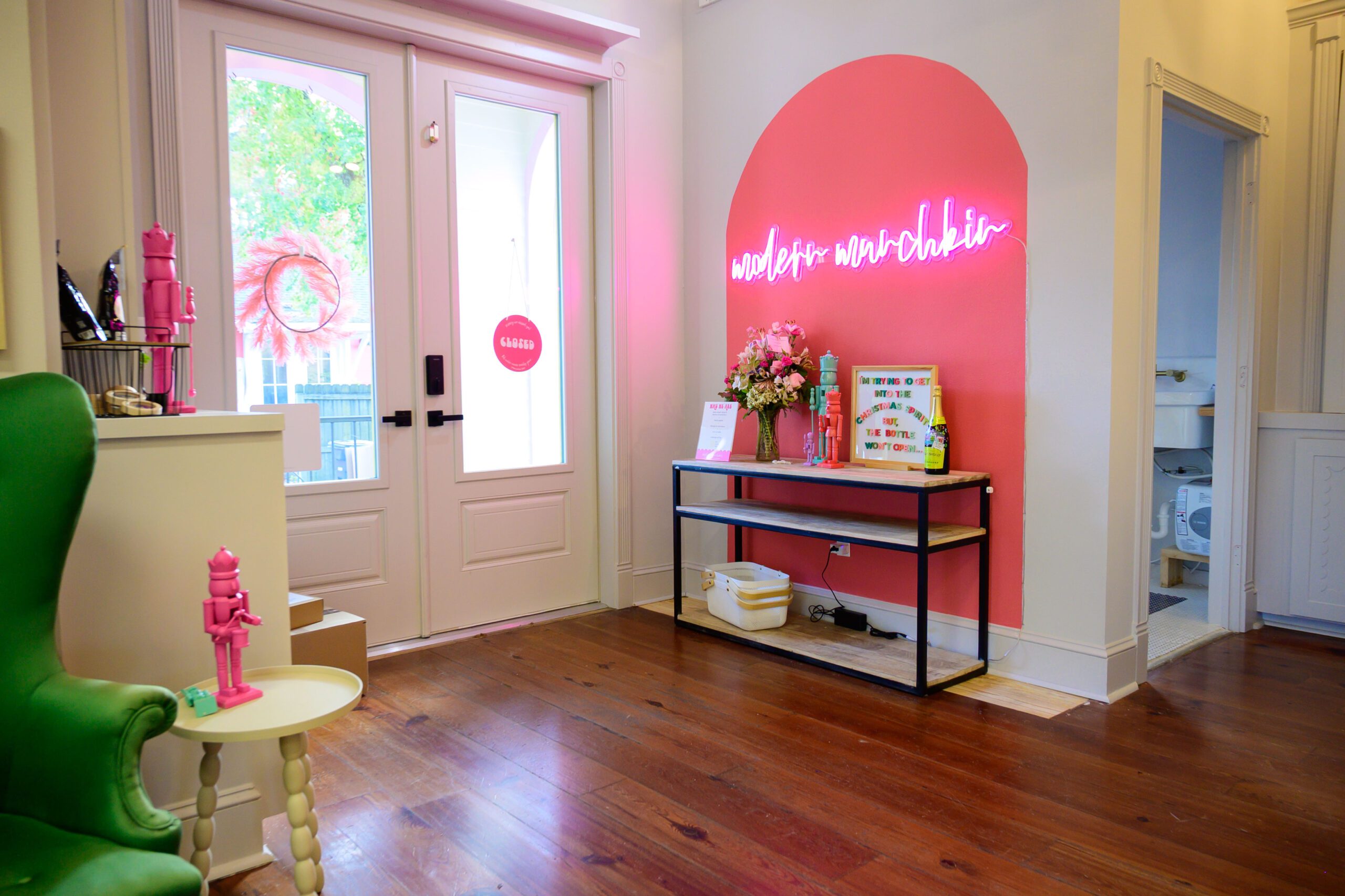 Roll into Mid City and you’re sure to spot The Modern Munchkin’s upgrades to the old Victoria’s Toy Station. The exterior has a fresh paint job of white, teal and pink, giving it the look of a larger-than-life doll house. Inside, customers are met with a bright pink neon sign spelling out the shop’s name and rooms filled with motorized cars racing on magnetic tracks, along with books, bath toys, stuffies and more. Other rooms will be dedicated to open play, workshops and events.