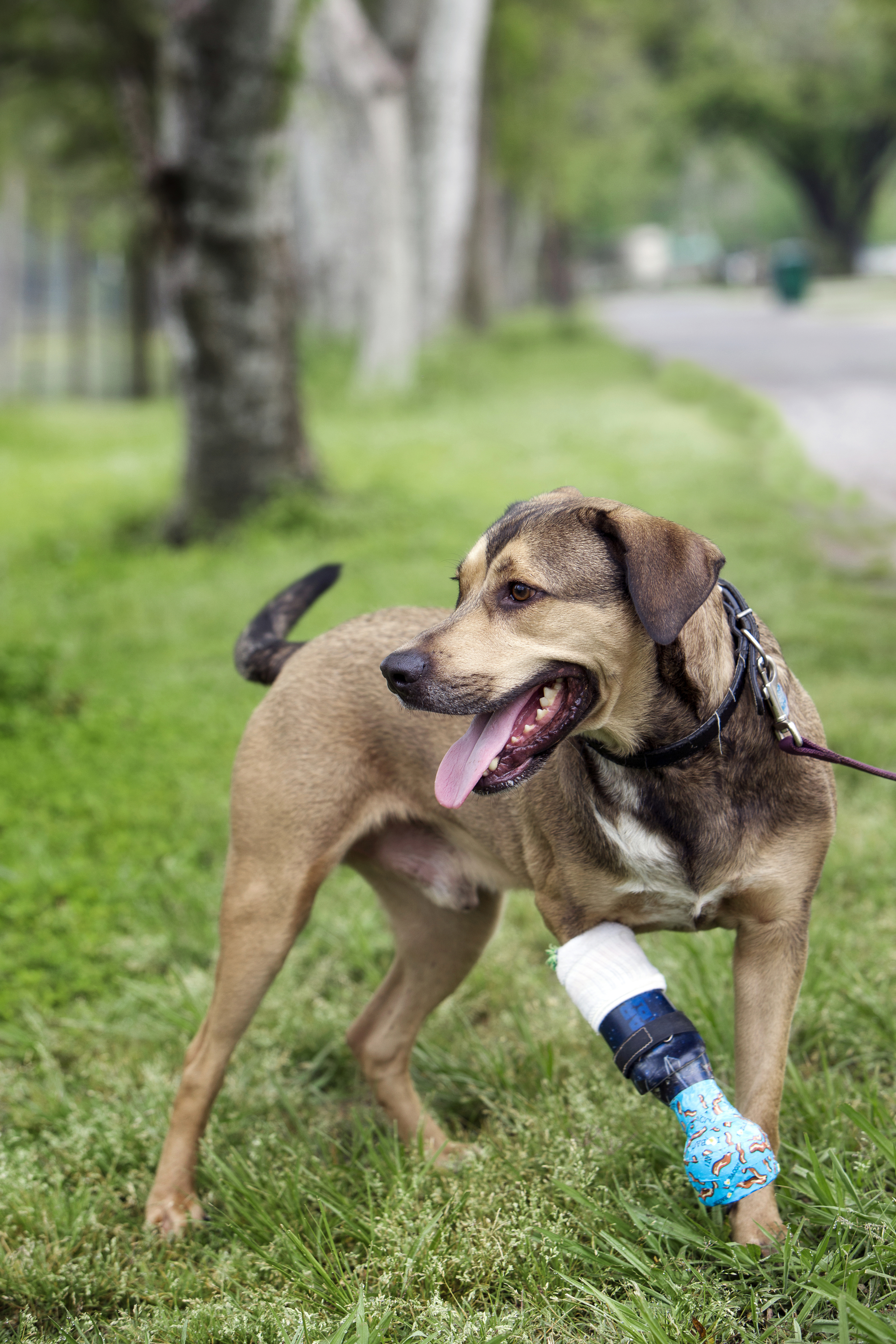 The amputation was completed at LSU’s Vet School, and Molly later received a prosthetic leg.