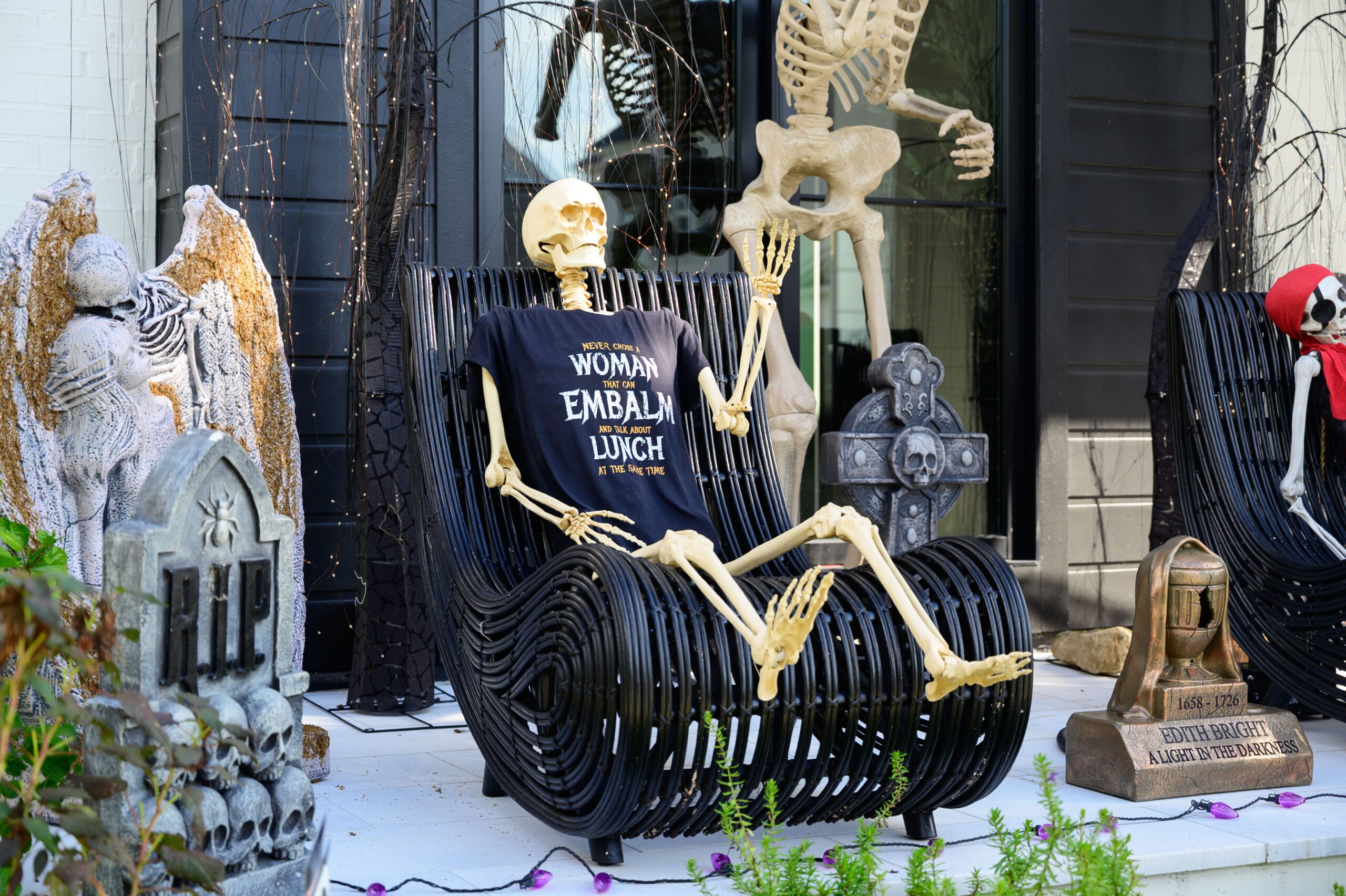 225 contributing photographer Avery White went decor hunting, armed with her camera, and captured spooky setups that we just had to share—from skeleton versions of Taylor Swift and Travis Kelce to a dead rock band. Scroll on to take a look…if you dare!