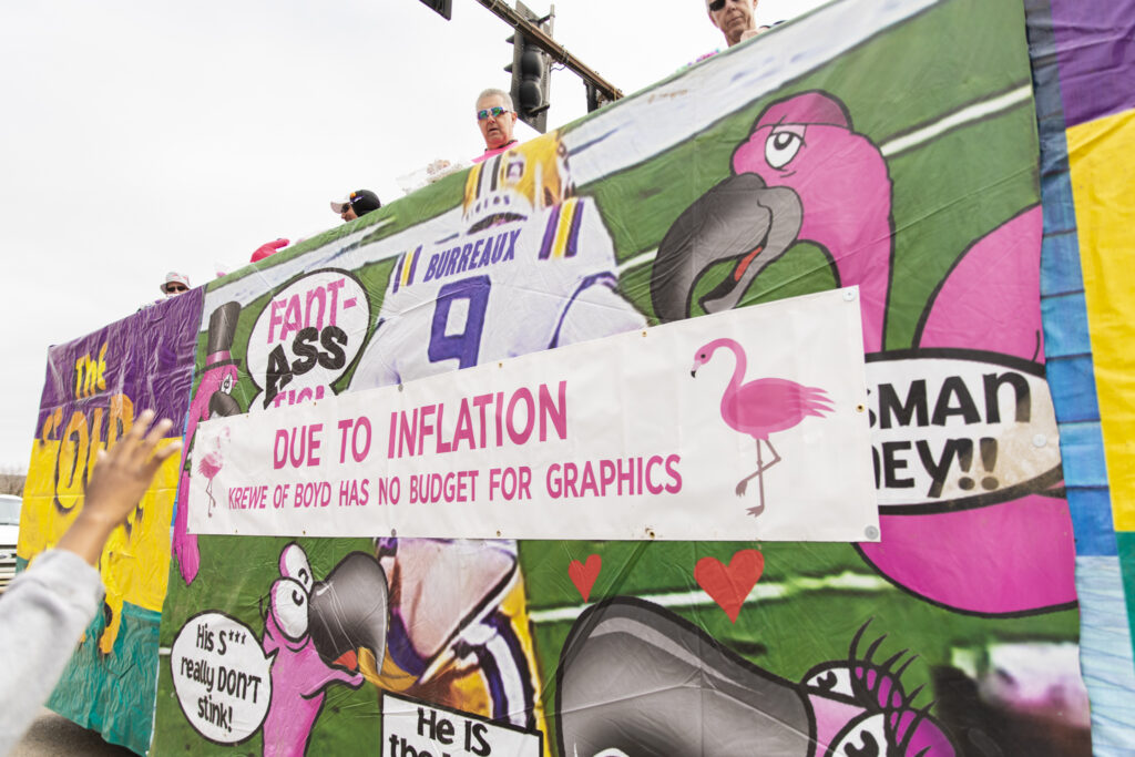 The Spanish Town Mardi Gras parade rolled this past Saturday, Feb. 26, in downtown Baton Rouge with the much-debated “Porn Again Flamingos” theme.
