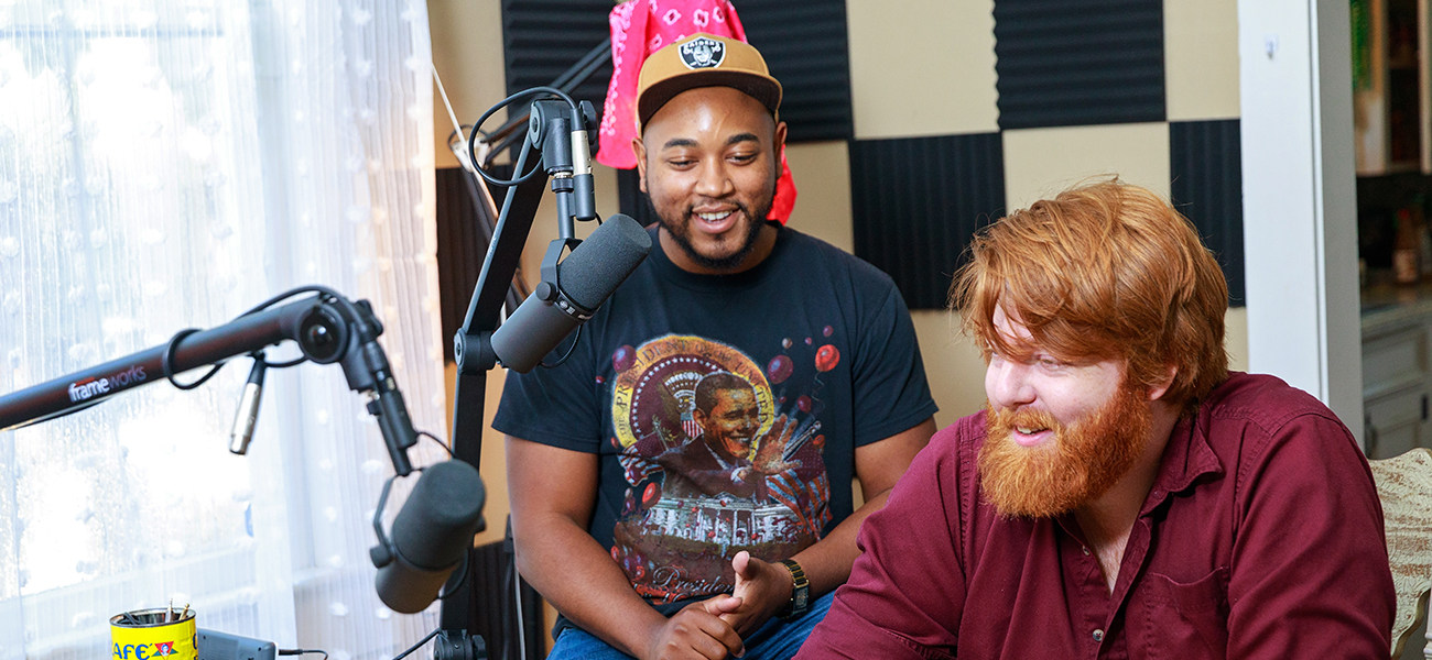 Deven Jackson and Zack Douglas, two of the hosts of the Baton Rouge Sucks podcast