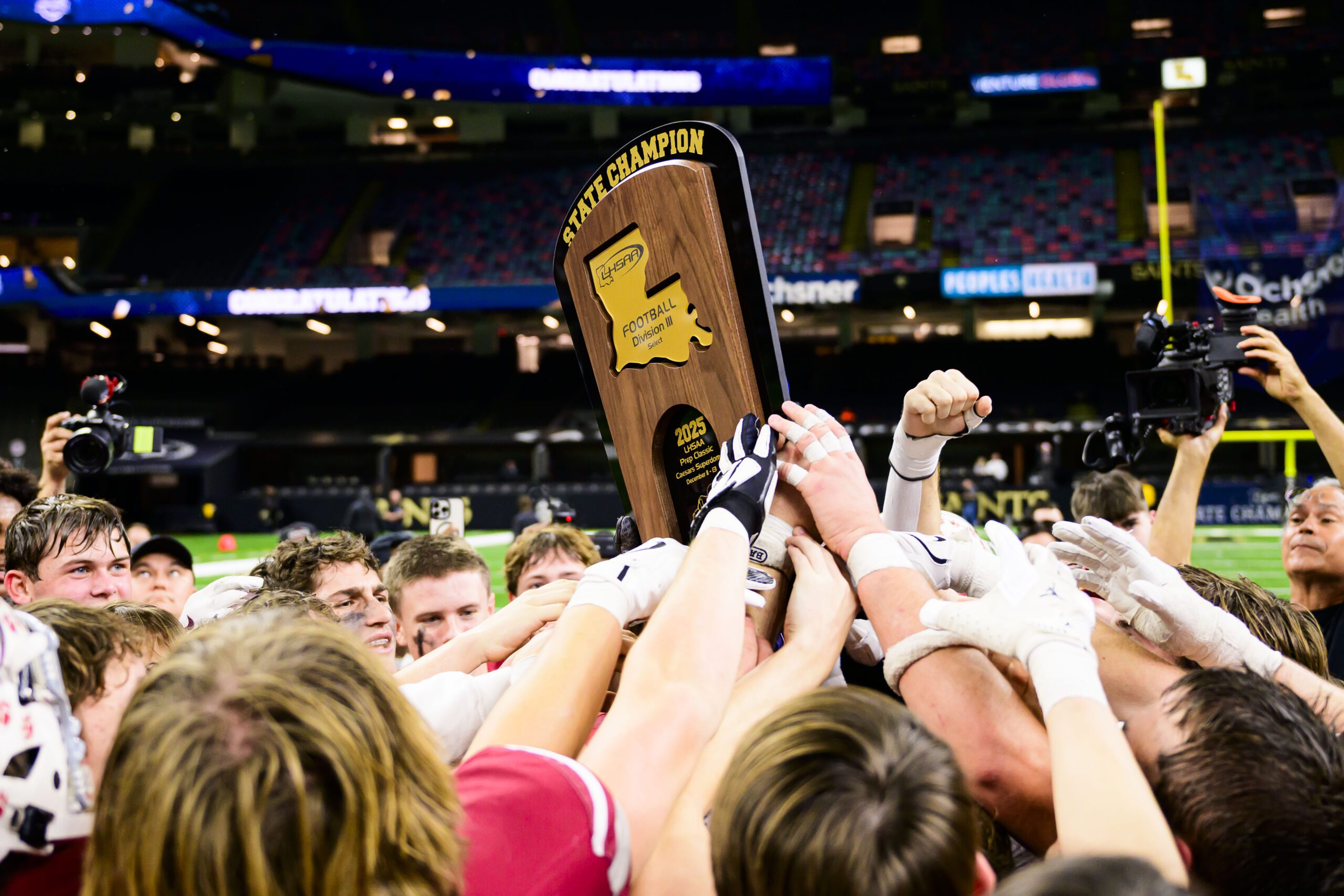 With a decisive 34-17 win over Calvary Baptist Academy at the Ceasars Superdome in New Orleans on Thursday, Dec. 12, The Dunham School football team sealed the Division III Select State Championship, bringing home the title for the first time since 2004.