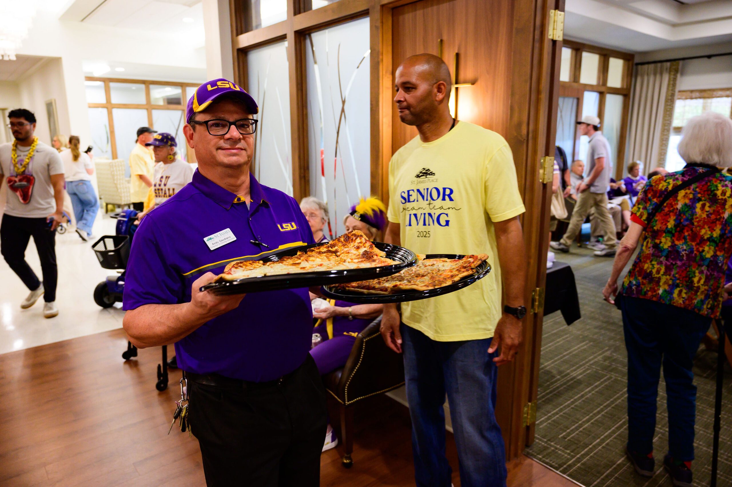 Rocco’s owner Kevin Culjat, having heard of St. James Place because of its activities in 2023, was very willing to get involved with the party and send pizzas down to Baton Rouge, so residents could have a true Rocco’s pizza party for the championship.