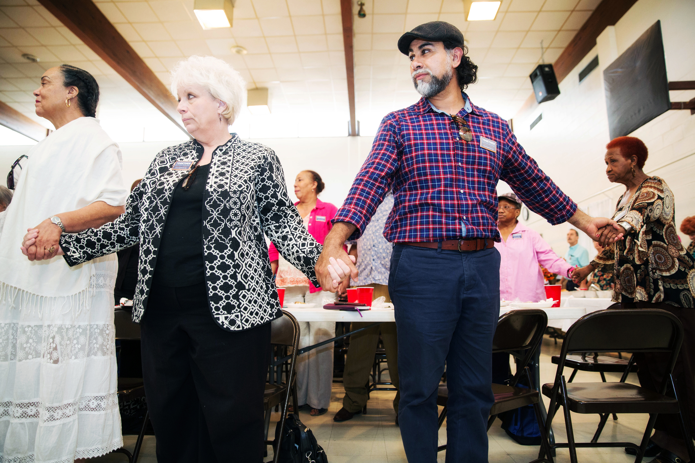 The church is mere blocks away from the Triple S Food Mart where Sterling had been killed by police only one week before. While the city’s pain is still raw, the meeting is Together Baton Rouge’s first town hall designed to help the community heal. Attendees represent the diversity of Baton Rouge, with people from all over the city and from all different racial and socioeconomic backgrounds present. They split into small groups to speak candidly about their thoughts and feelings on Sterling and similar tragedies that have deeply affected Baton Rouge and the entire country.