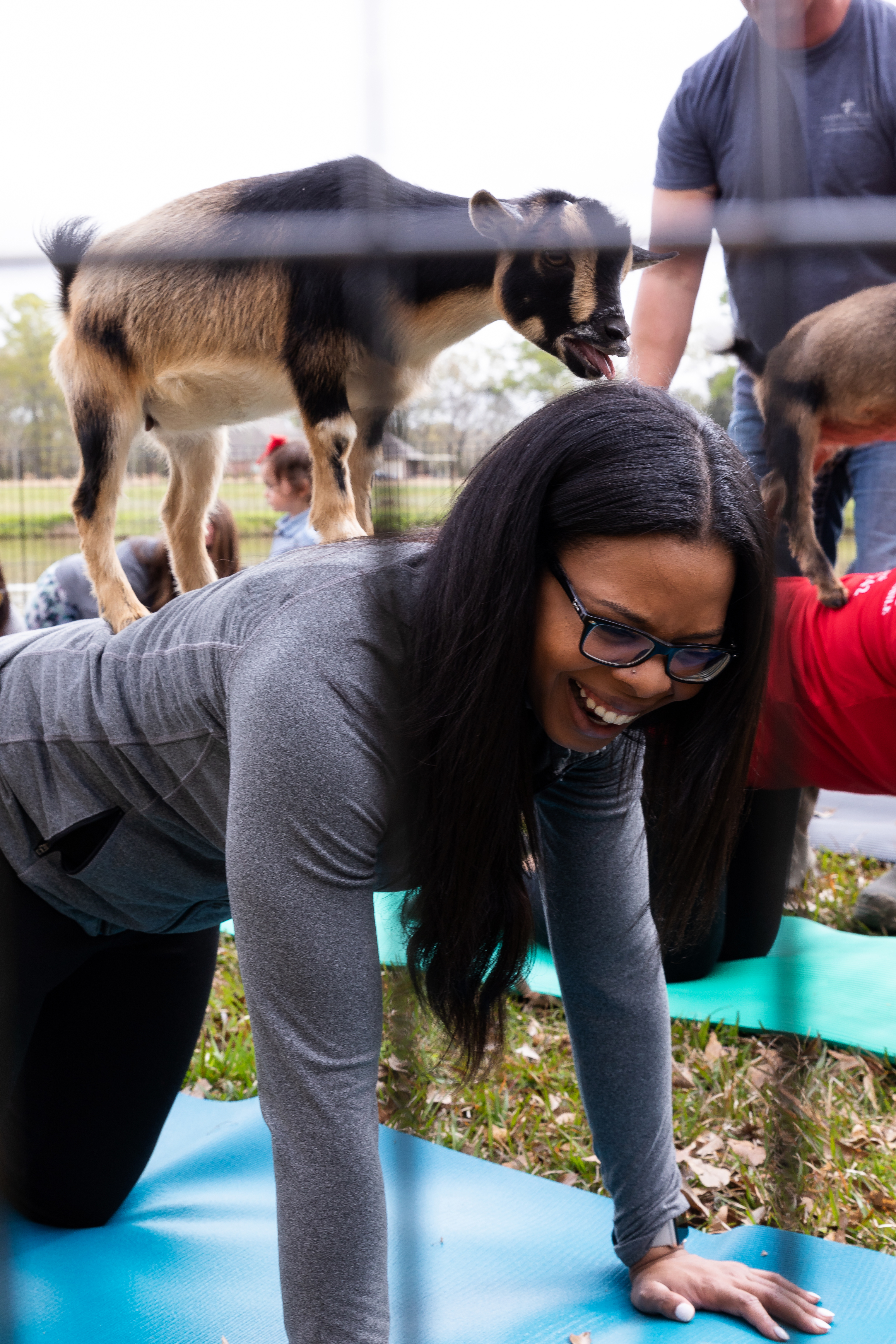 Its first two goat yoga classes last fall and this spring were hits, drawing 30 to 50 people. With another class coming up at the UREC on April 22, the goal is to keep adding more classes and growing attendance, exposing more Baton Rougeans to the exercise.
