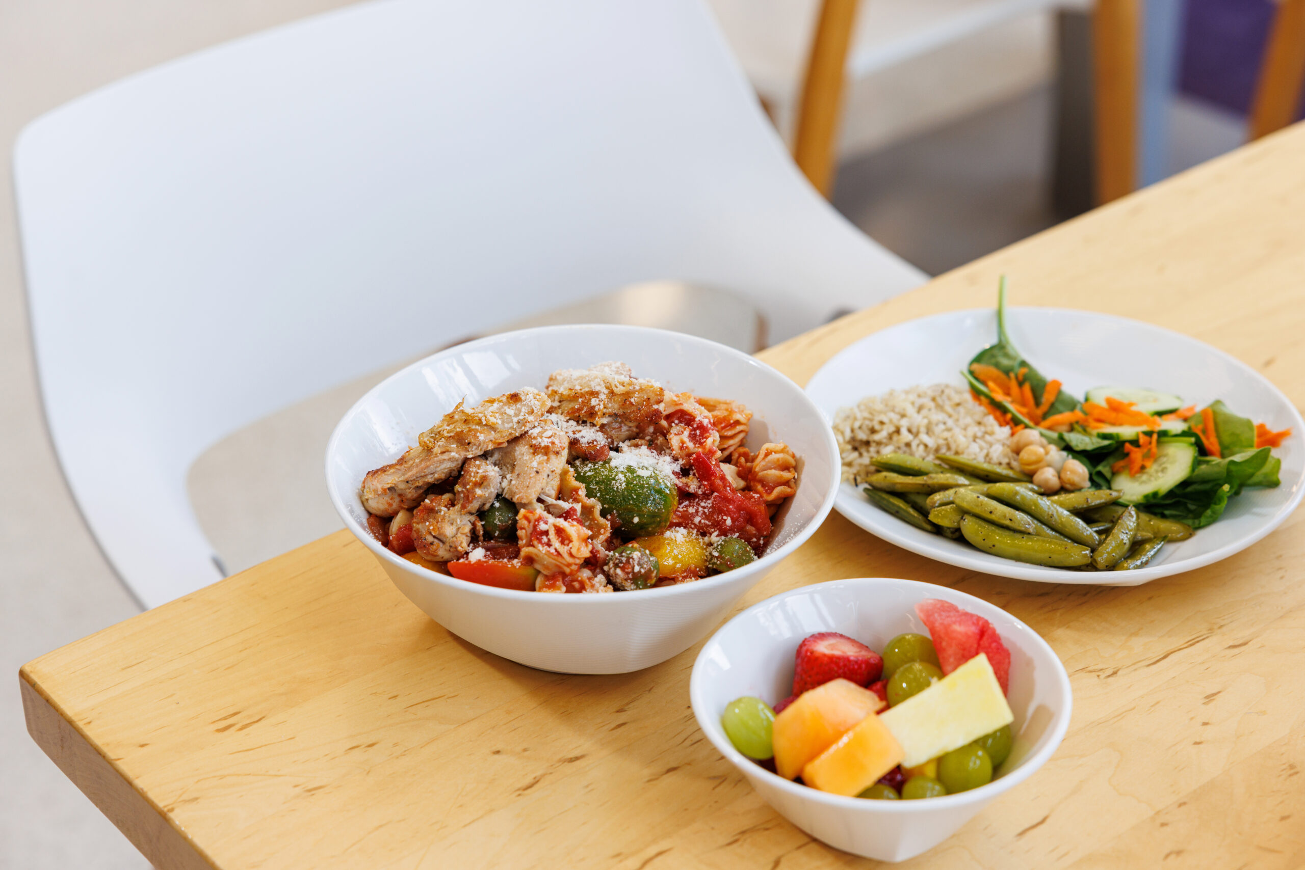 Think: fajita bowls, marinated pork tenderloins, hearty soups, a packed fruit bar and more.