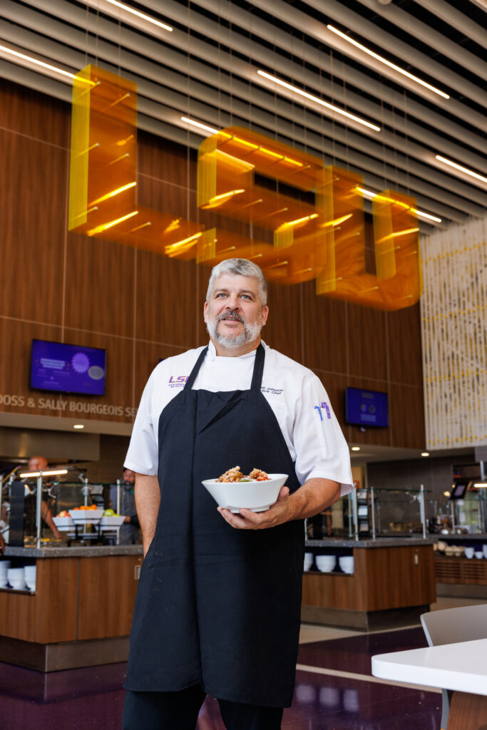 LSU brought Johnson on board when the center debuted. On an average day, find him making his rounds at the dining hall’s serving stations.