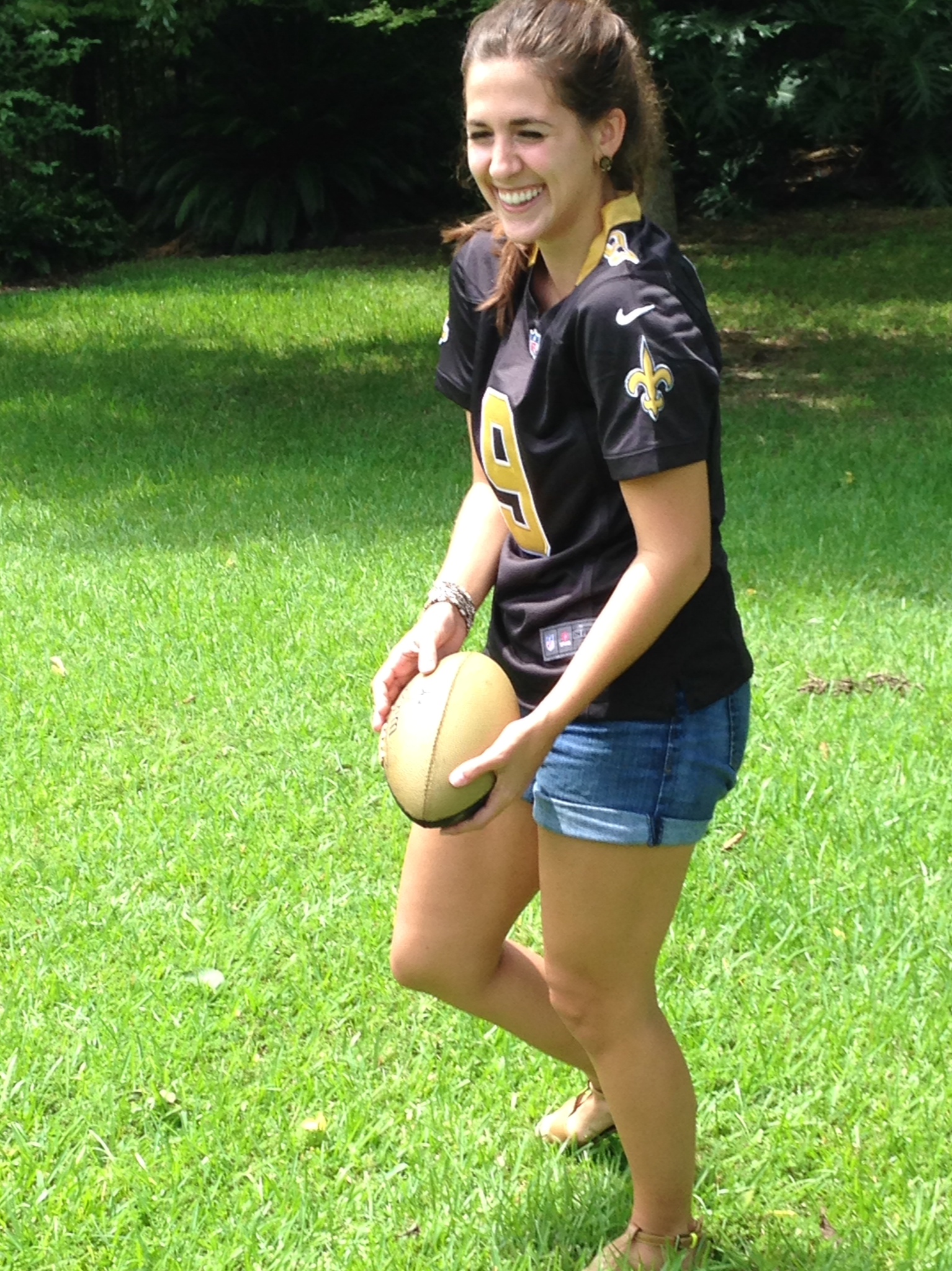 Let’s be honest—you either love ’em or hate ’em. I’m not usually one to wear a football jersey, but I recently received this one as a gift and figured I might as well rock it! Of course, throw it on with jeans or cut-offs and you’re good to go, but if you want to style it up a bit, accessorize, then try tucking it in.