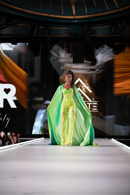 “We were backstage looking at the monitor, and we were just going crazy,” she says. “By the time I came out (on the runway), I was just so excited and ecstatic because it’s one thing to have a vision, and it’s another thing to actually see it come to pass. It was everything that I thought it would be and more.”