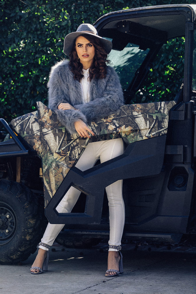 At this afternoon’s photo shoot, Brooks’ two worlds collide for the first time. She poses for the camera, like always. But today she does it away from Manhattan’s grit and glamour, in perhaps her most comfortable setting ever: the house where she and her friends rode ATVs as teenagers. The closets here, she jokes, are probably bigger than her SoHo apartment.