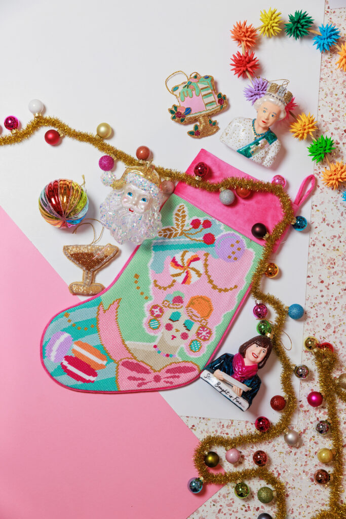 It may seem unnatural to decorate with colors outside of the holiday norm, but Baubles by Bella Bella is embracing a fresh and fun decorating approach this season with a technicolor world full of chartreuse reindeer heads, martini-glass ornaments and bubblegum-pink stockings.