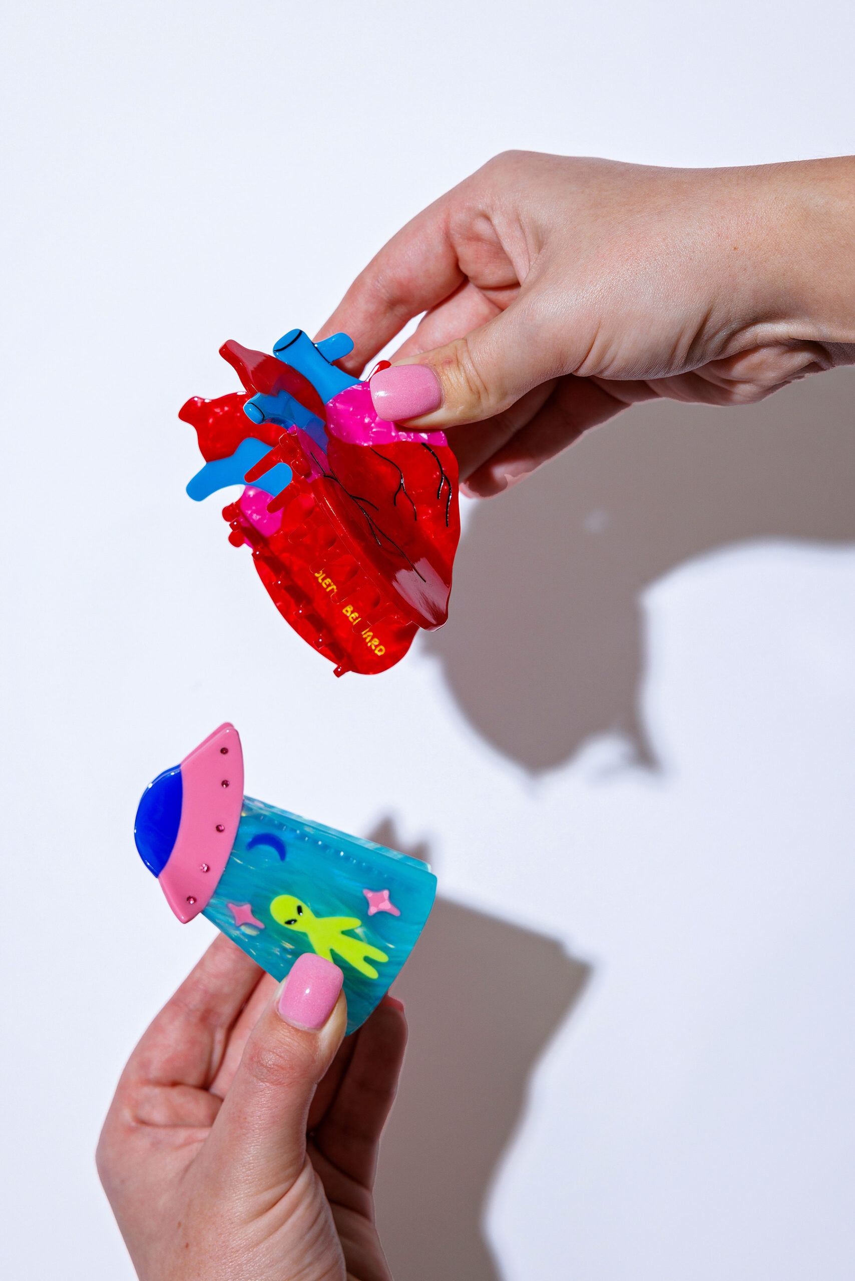 From martini glasses and anatomical hearts to flower bunches and hot dogs, claw clips have come a long way. And while those glossy black, tortoise print clips are cool again, the out-of-the-box shapes and designs seem to be winning the hearts—and hairs—of buyers.