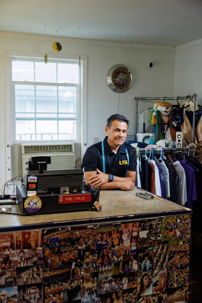But alongside the spruced apparel of Baton Rouge partygoers and professionals, there are familiar flashes of purple and gold. A rack of Tiger Band tunics sits alone, waiting expectantly for tailor Oscar Reyes to work his magic. Since the mid-’80s, El Bengal Tailor has been an essential part of keeping the Tiger Nation looking good. It’s the go-to alterations provider for the band, the football team and many other LSU Athletics teams.