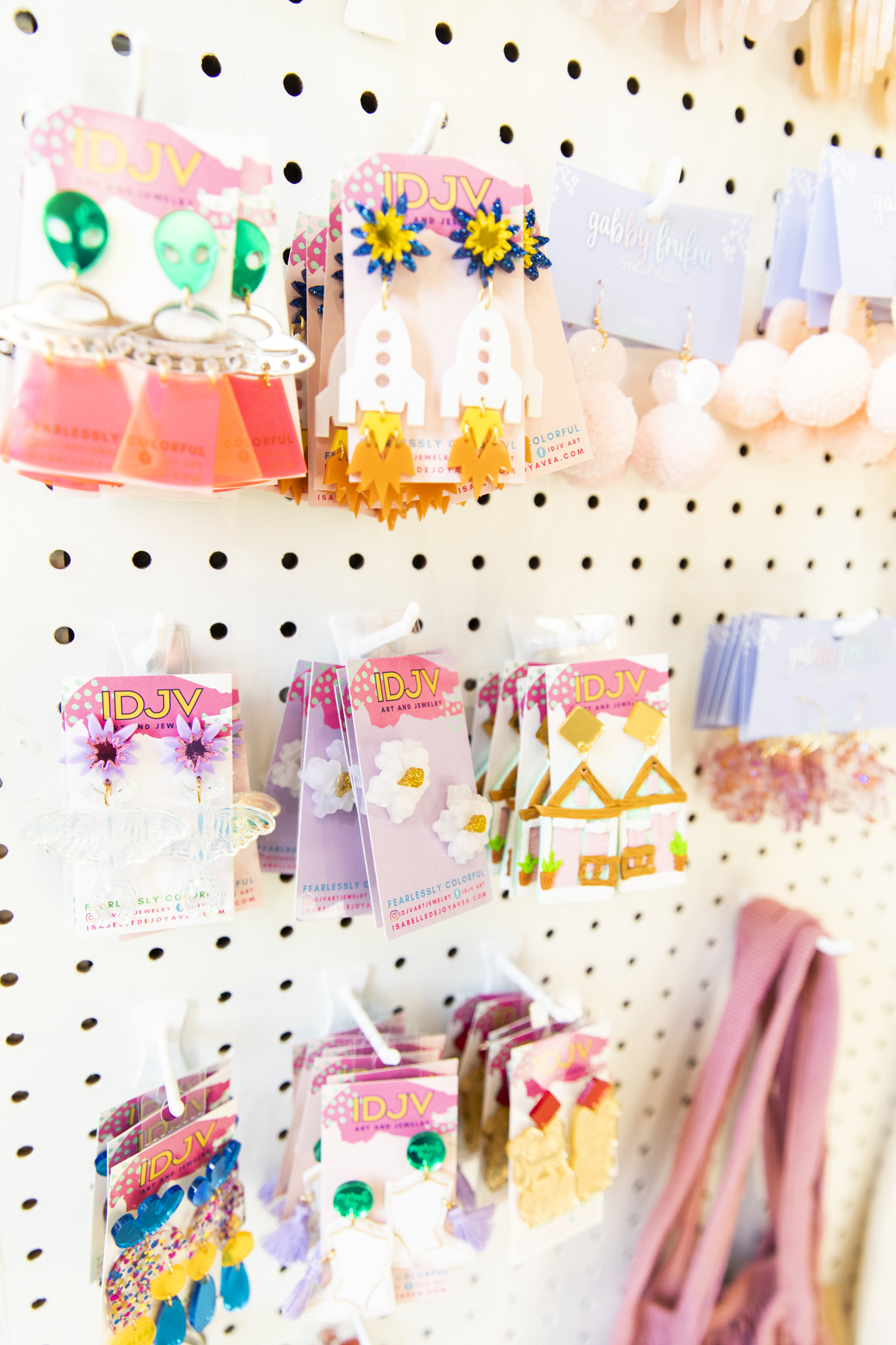 The hues of greens and pinks can be seen throughout the space as you browse different shelves of locally made goods and art from makers like Cora B. Gallery, Aline Prints + Design, Parish Clay Co. and more. Items range from a wall of greeting cards to tables of stationery and cookbooks.