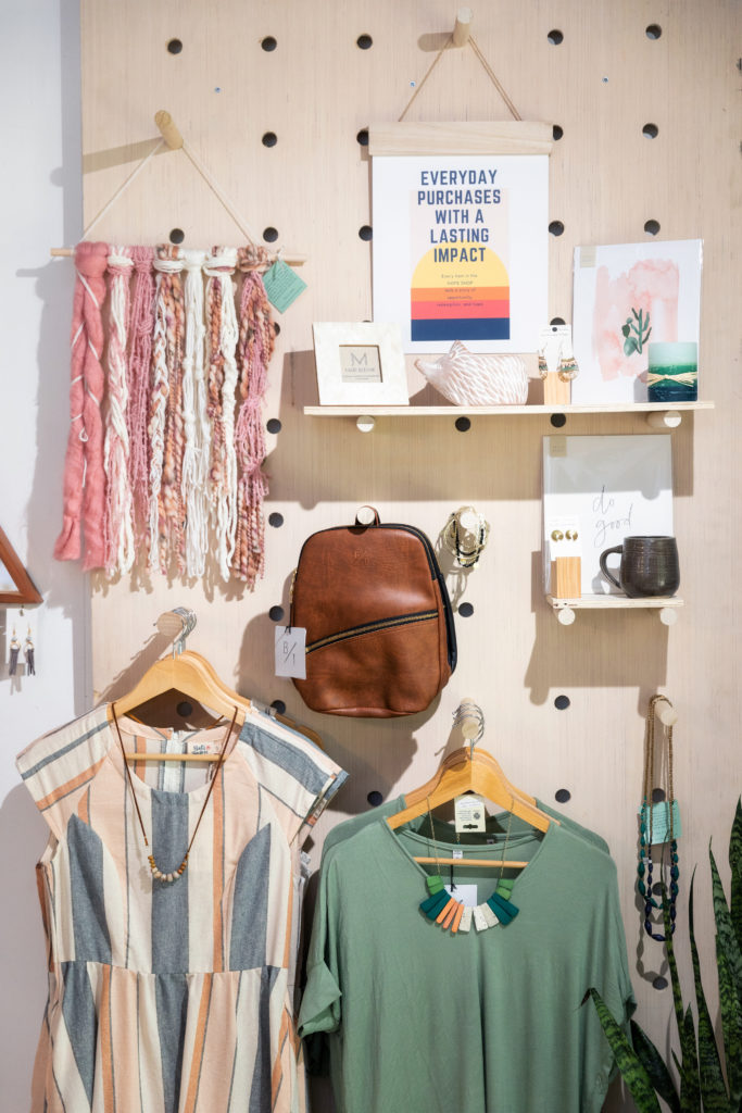 The bright, dreamy and boho-chic shop is filled wall to wall with ethically made home goods, accessories, clothing, paper goods and art. Regulars can expect to see all their favorite items like jewelry, candles and handbags, plus more clothing options and locally made goods by companies like So Yaya Skincare, Love Life Soap Co. and Andi Lynn’s Pure & Custom Formulary.