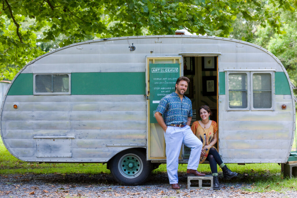 Smith and Doherty own Art to Geaux, a mobile boutique stocked with Smith’s paintings, Doherty’s collages and handmade jewelry, and a curated collection of vintage clothing.